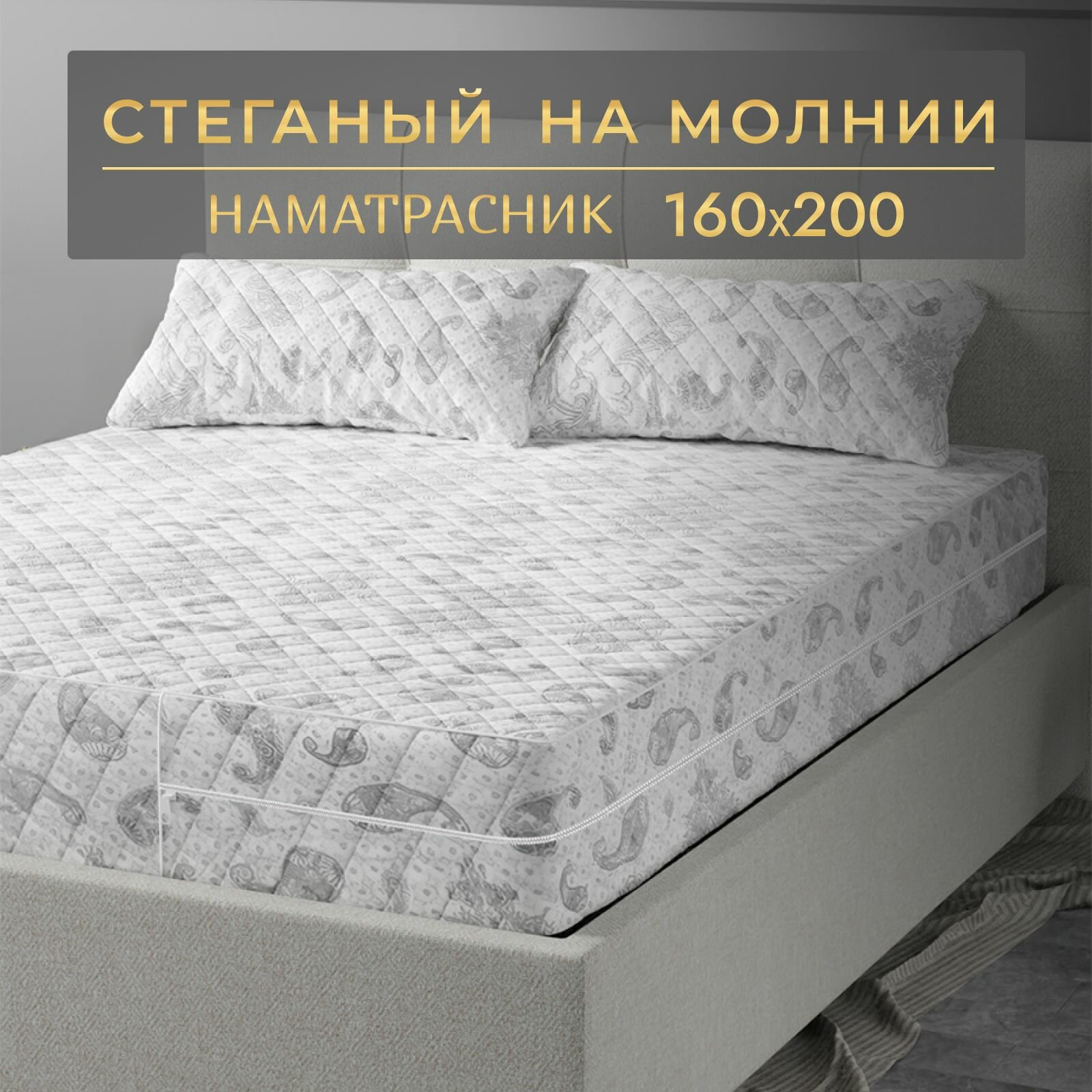 Наматрасник 160х200 стеганый на молнии, с высокими бортиками 18-20 см, стеганый чехол на матрас для двуспальной кровати