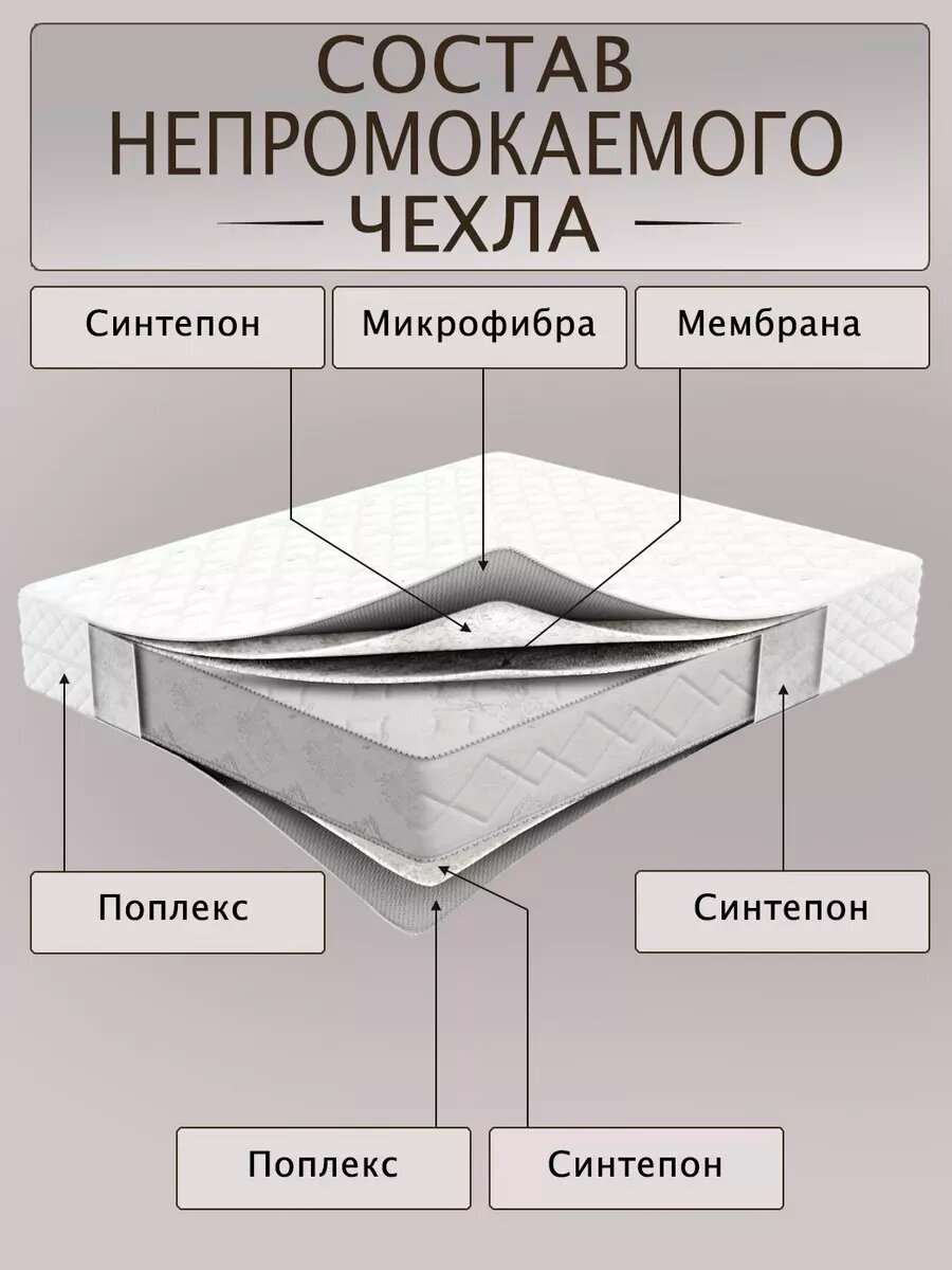 Купить Наматрасник непромокаемый 140х200, на молнии, с высокими бортиками 21-24 см, стеганый чехол на матрас, белый