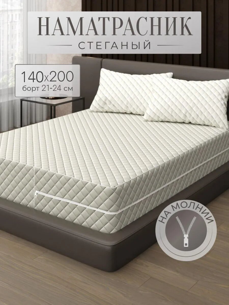 Наматрасник 140х200 стеганый на молнии, с высокими бортиками 21-23 см, чехол на матрас для двуспальной кровати