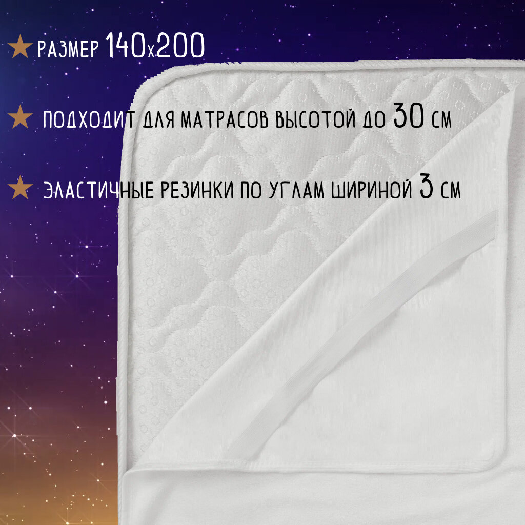 Купить Наматрасник 140х200 непромокаемый защитный водоотталкивающий на резинке по углам, мулетон махровая ткань, водонепроницаемый чехол на матрас