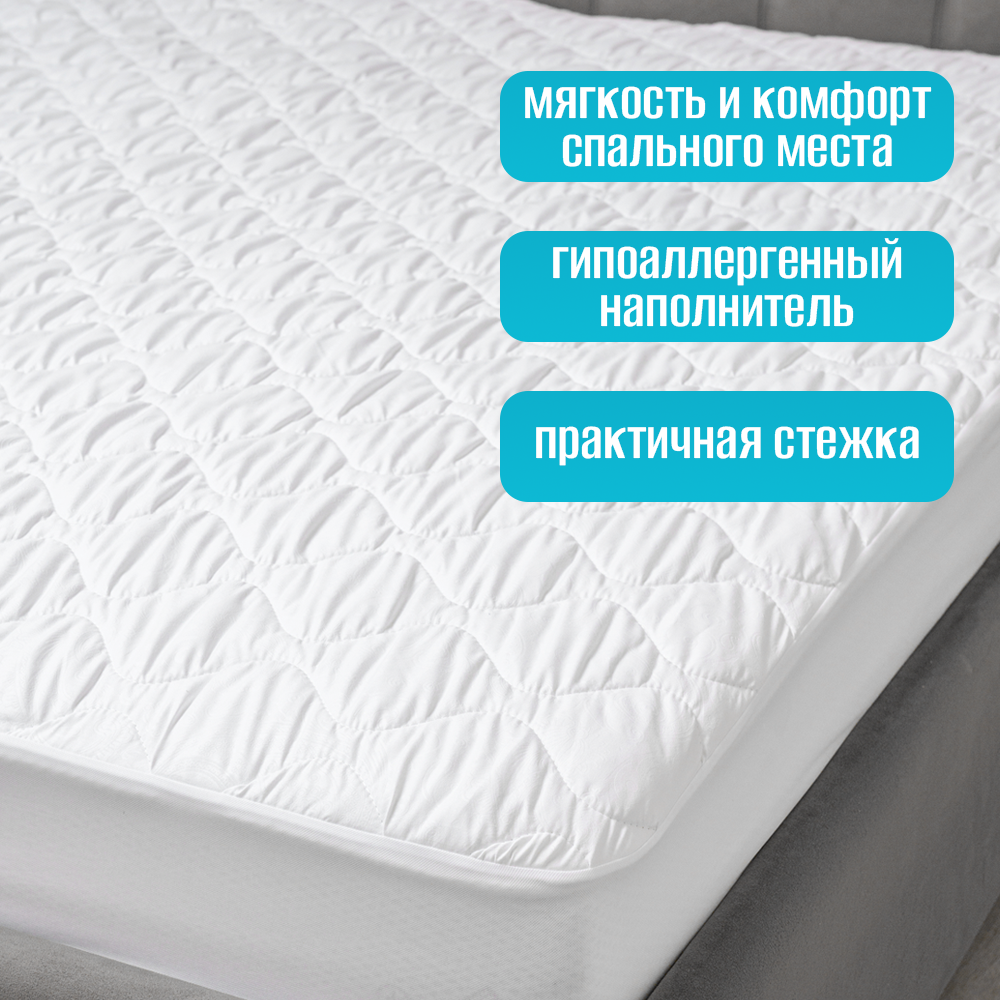 Наматрасник стёганный Асика / Наполнитель овечья шерсть / С резинками по углам - 120х200 см / Чехол на матрас