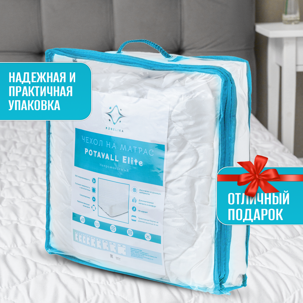 Наматрасник непромокаемый 80х200 стеганый на резинке с бортом, на высокий матрас до 32 см, PORELIKA интересное: