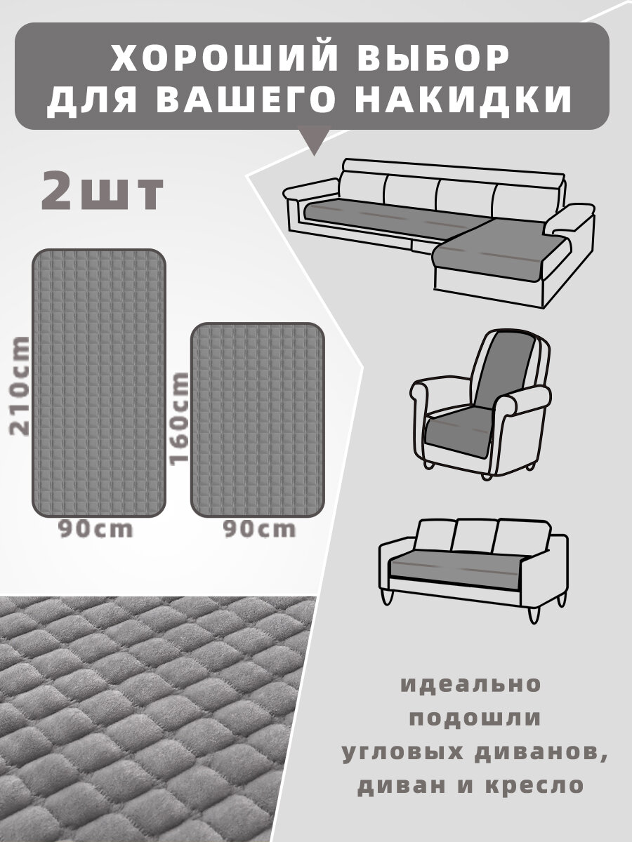 Фланель накидка на диван угловой и кресла антискользящие 2 шт, набор 160х90cm и 210х90cm интересное: