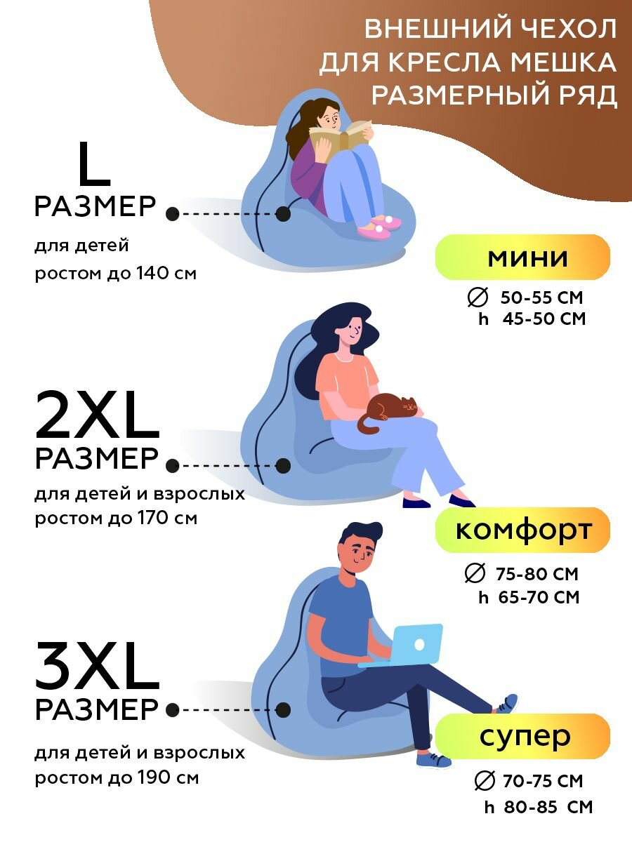 Купить Большой чехол для кресла мешка 3ХL велюр CAMARO