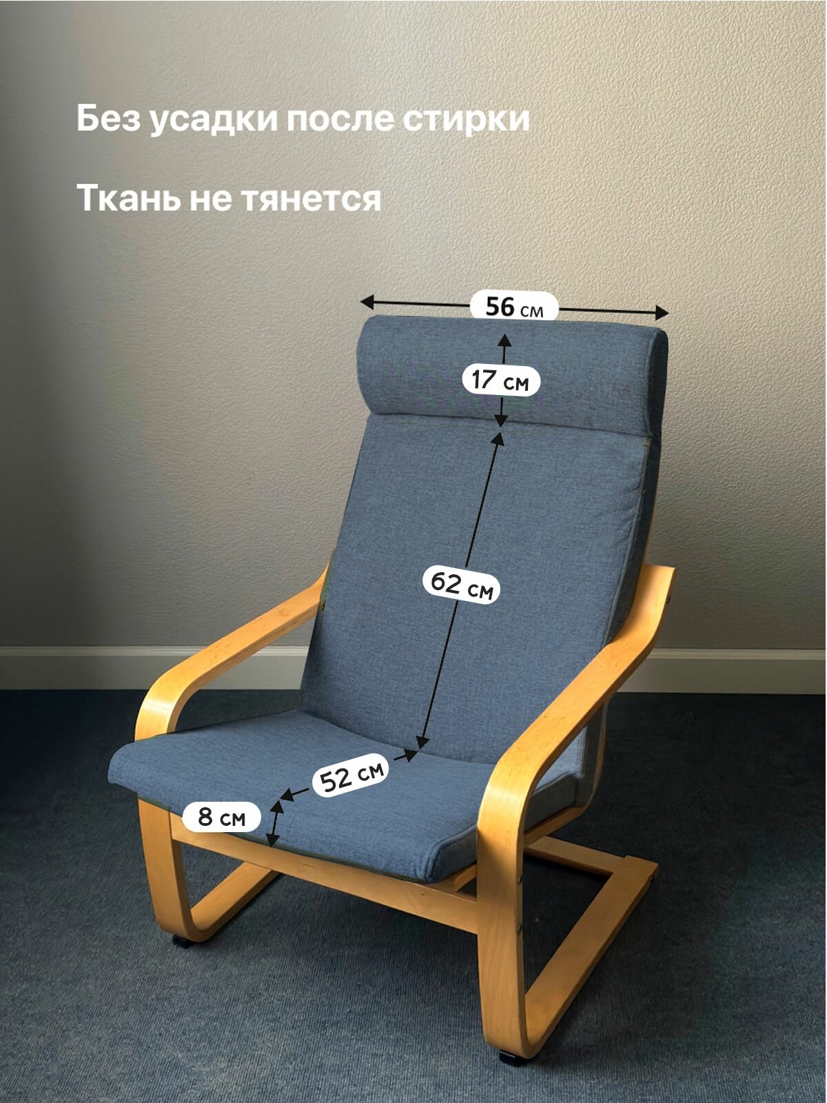 Чехол LuxAlto на кресло Poang Икеа без поролона, ткань Laguna рогожка, джинсовый, 1 шт. интересное: