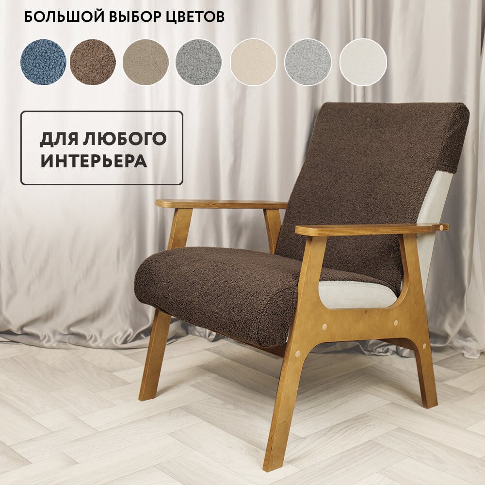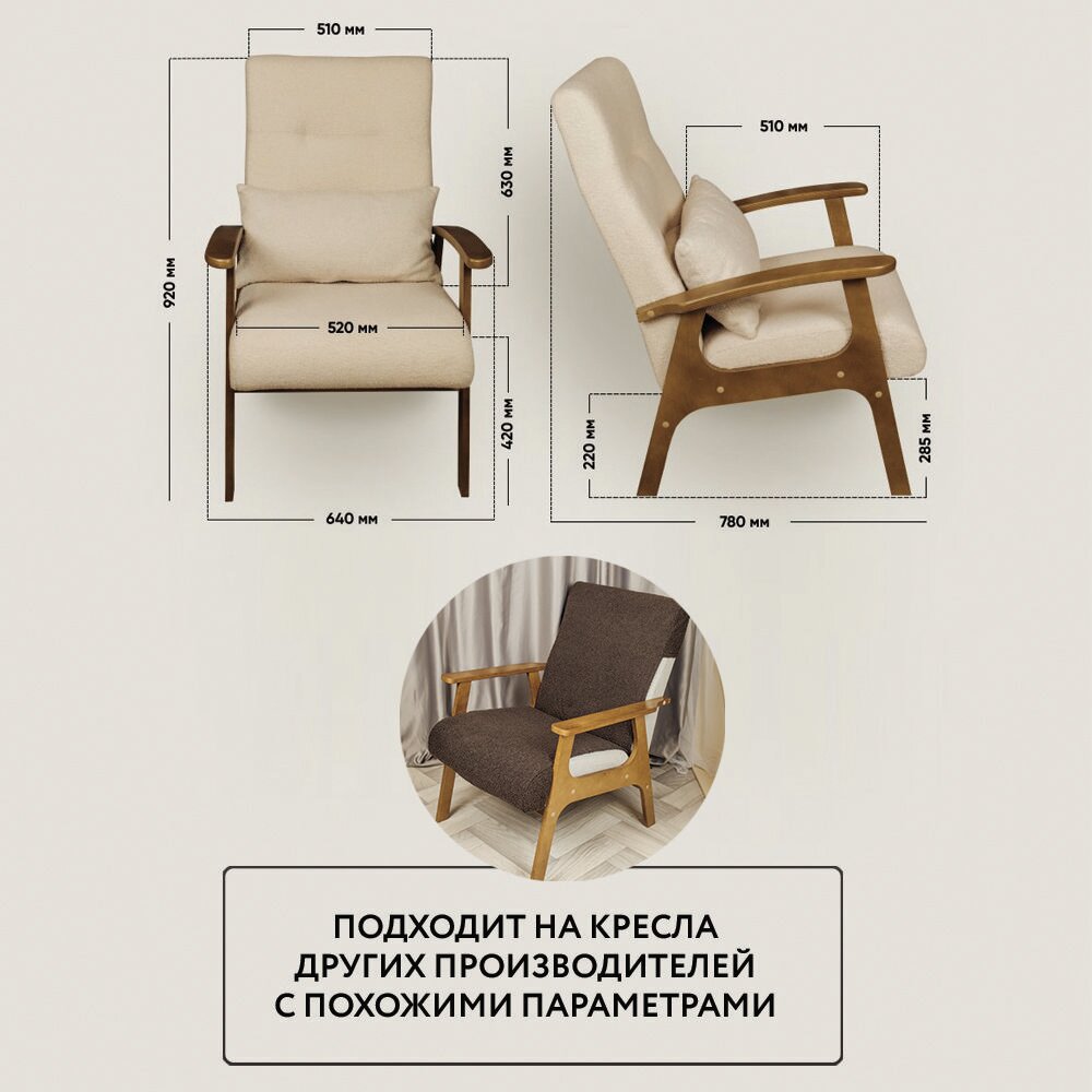 Чехол на кресло универсальный LADY MAY накидка на кресло с деревянными подлокотниками 114 x 52 см, Букле интересное: