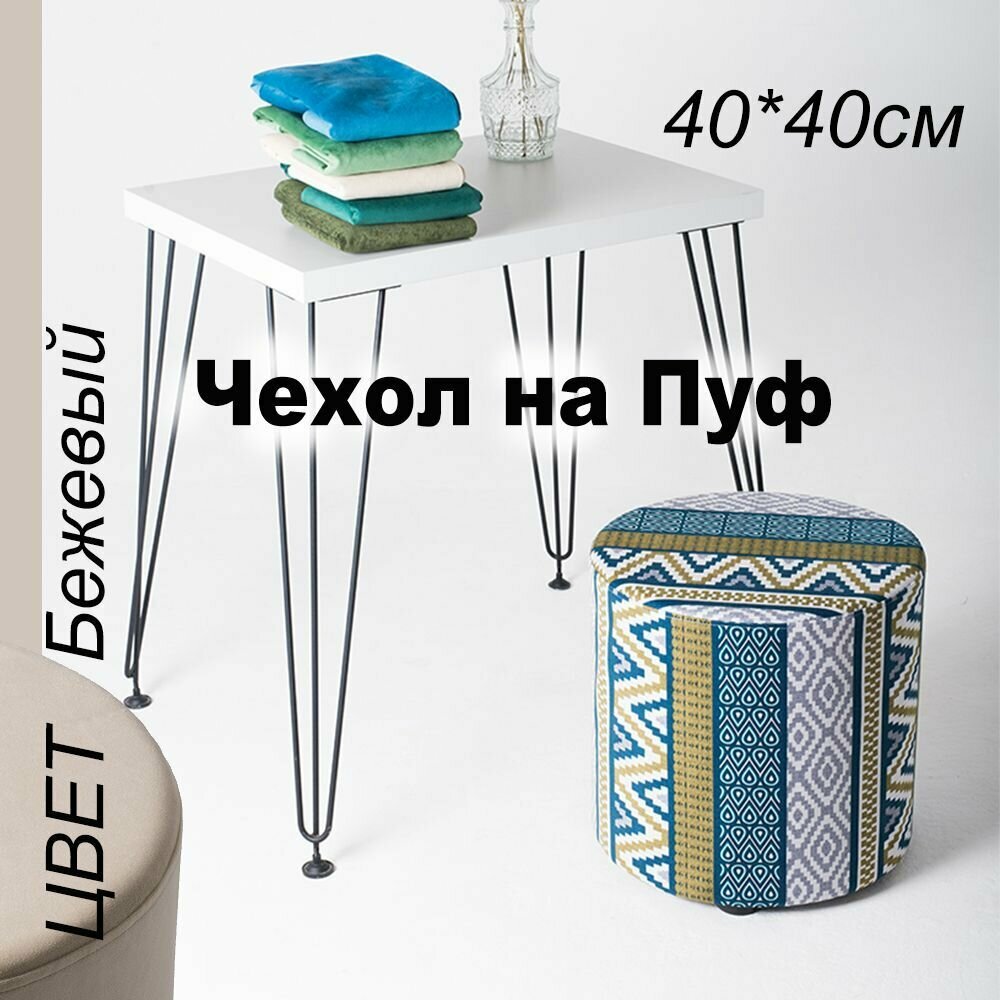 Съемный чехол на мягкий квадратный пуфик из велюра бежевого цвета высотой 40 на 40 в прихожую