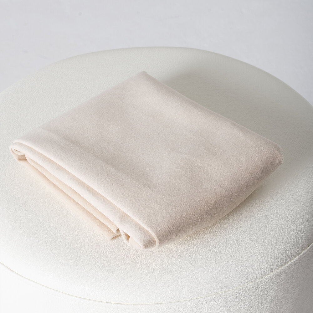 Чехол съёмный на Пуфик Круглый 39см, вельвет верх- бежево-серый, низ- белый (сливочный).