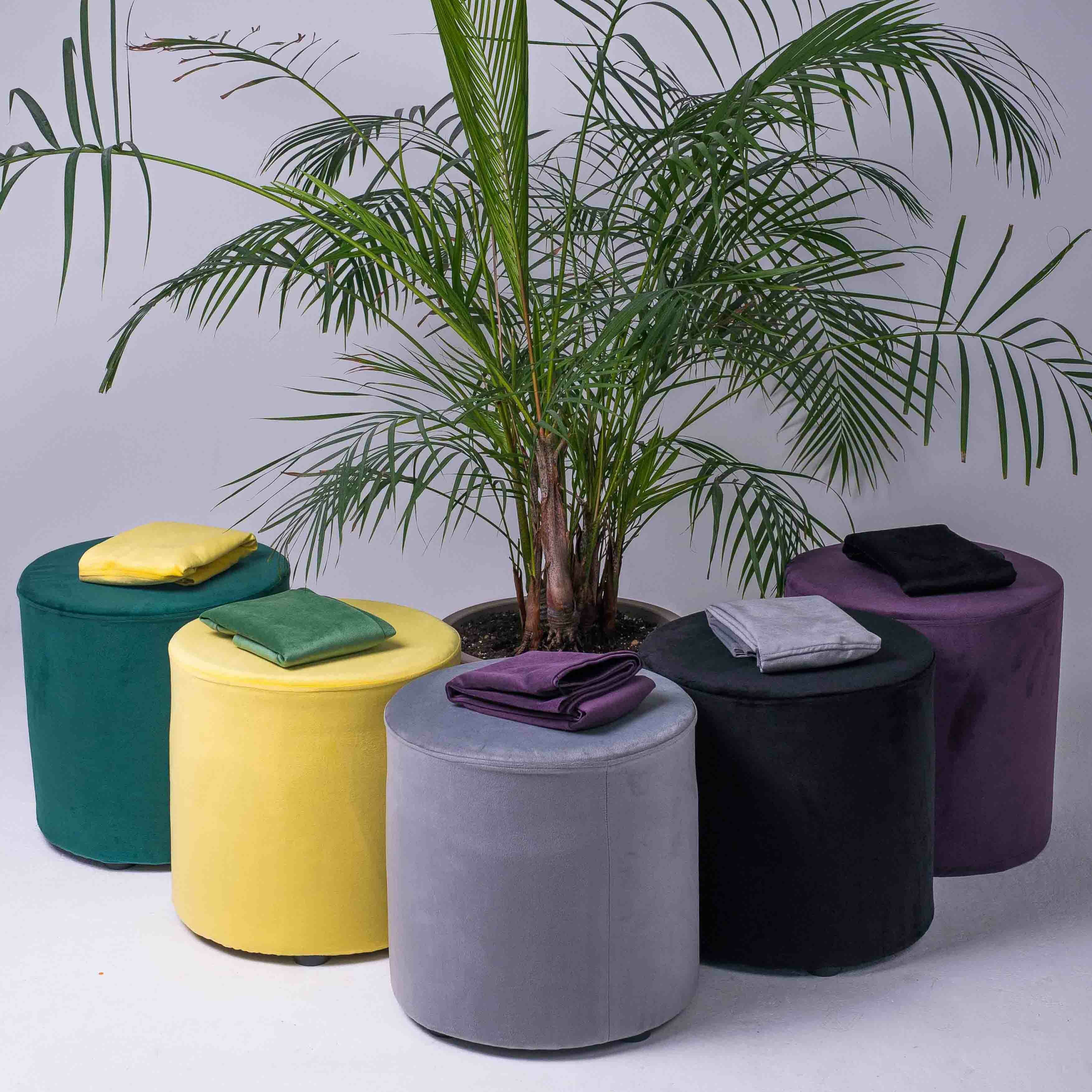 СохранитьСъемный чехол на мягкий круглый пуфик из велюра красного цвета высотой 40 на 40 в прихожую интересное: