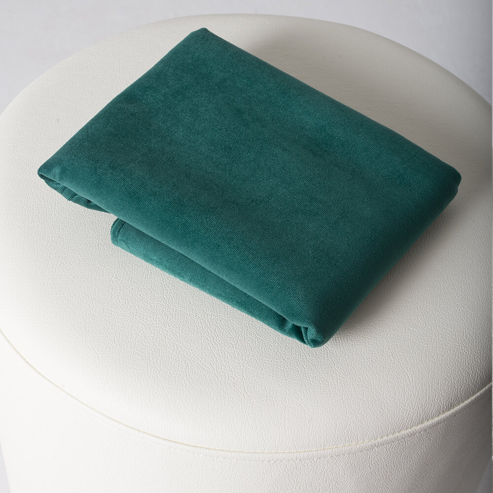 Чехол на круглый пуфик в прихожую из велюра зеленого цвета 40 на 55 см
