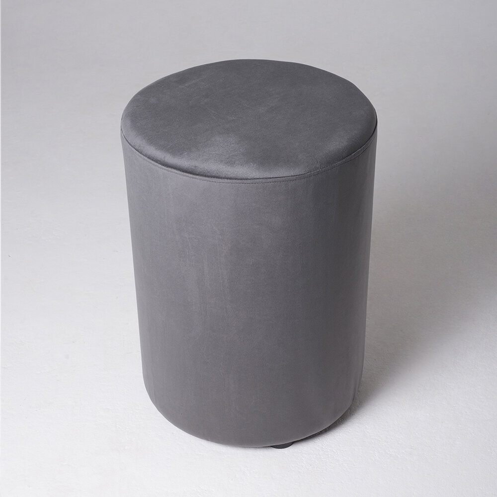 Съемный Чехол на мягкий круглый Пуфик из велюра темно серого цвета высотой 40 на 40 в прихожую