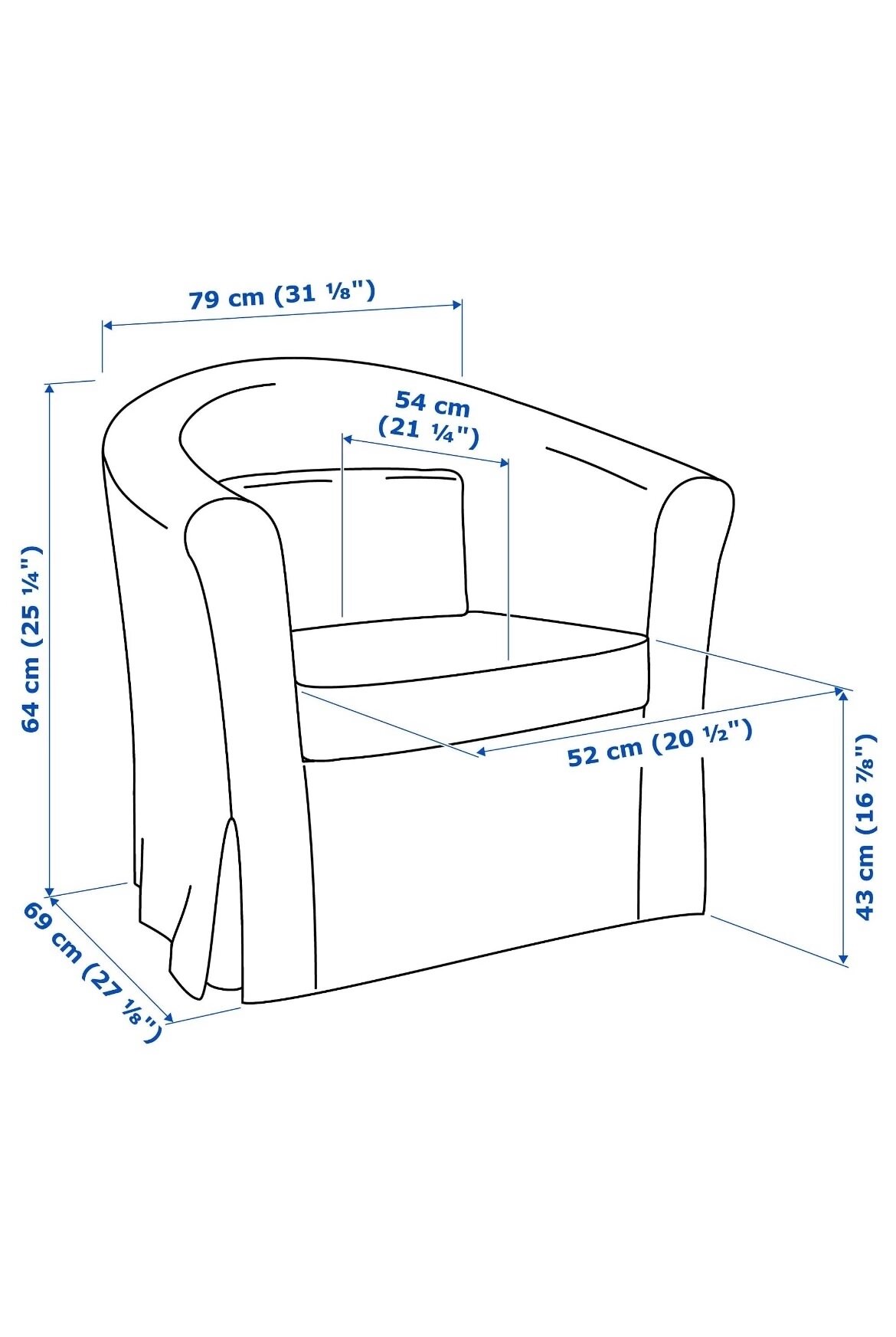 Чехол на кресло «Тульста» Цвет Синий Ткань Велюр «Антикоготь»