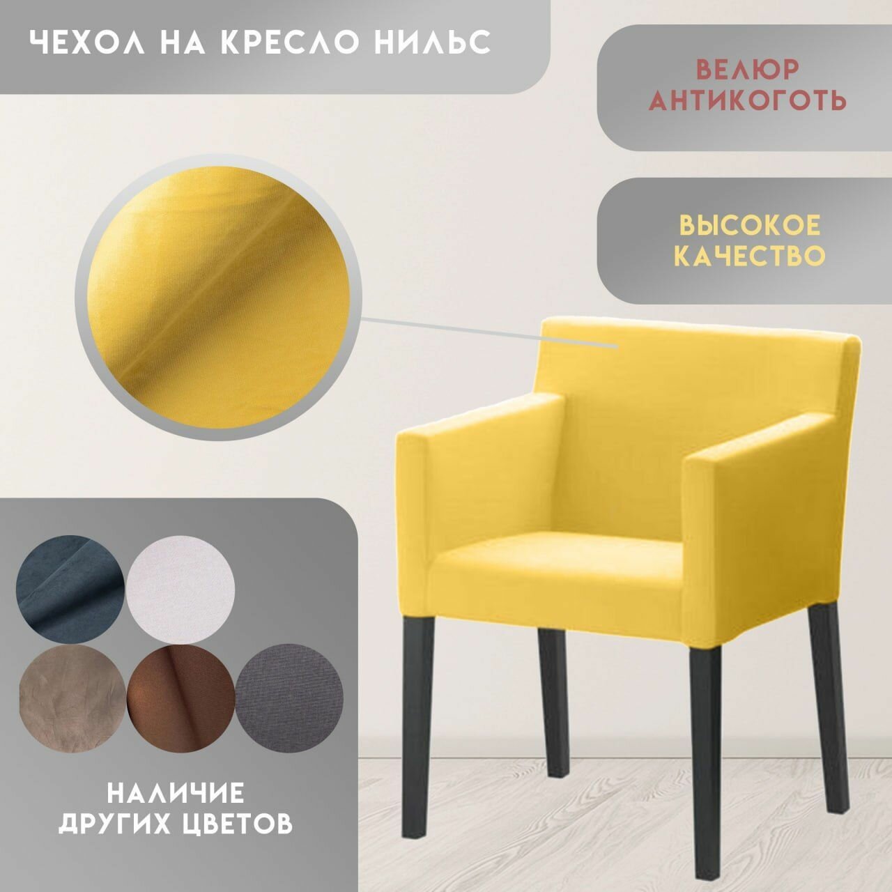 Купить Чехол на кресло "Нильс" желтого цвета из ткани велюр с эффектом "Антикоготь"