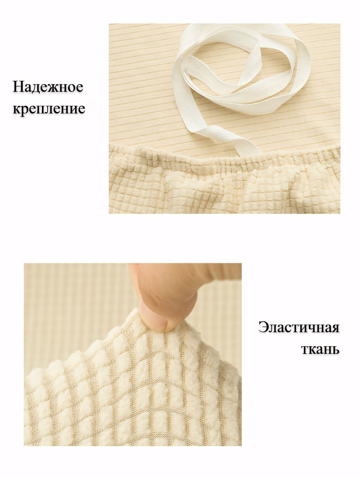 Чехол на прямой диван-кровать рельефный, бежевый, размер 190-230 см