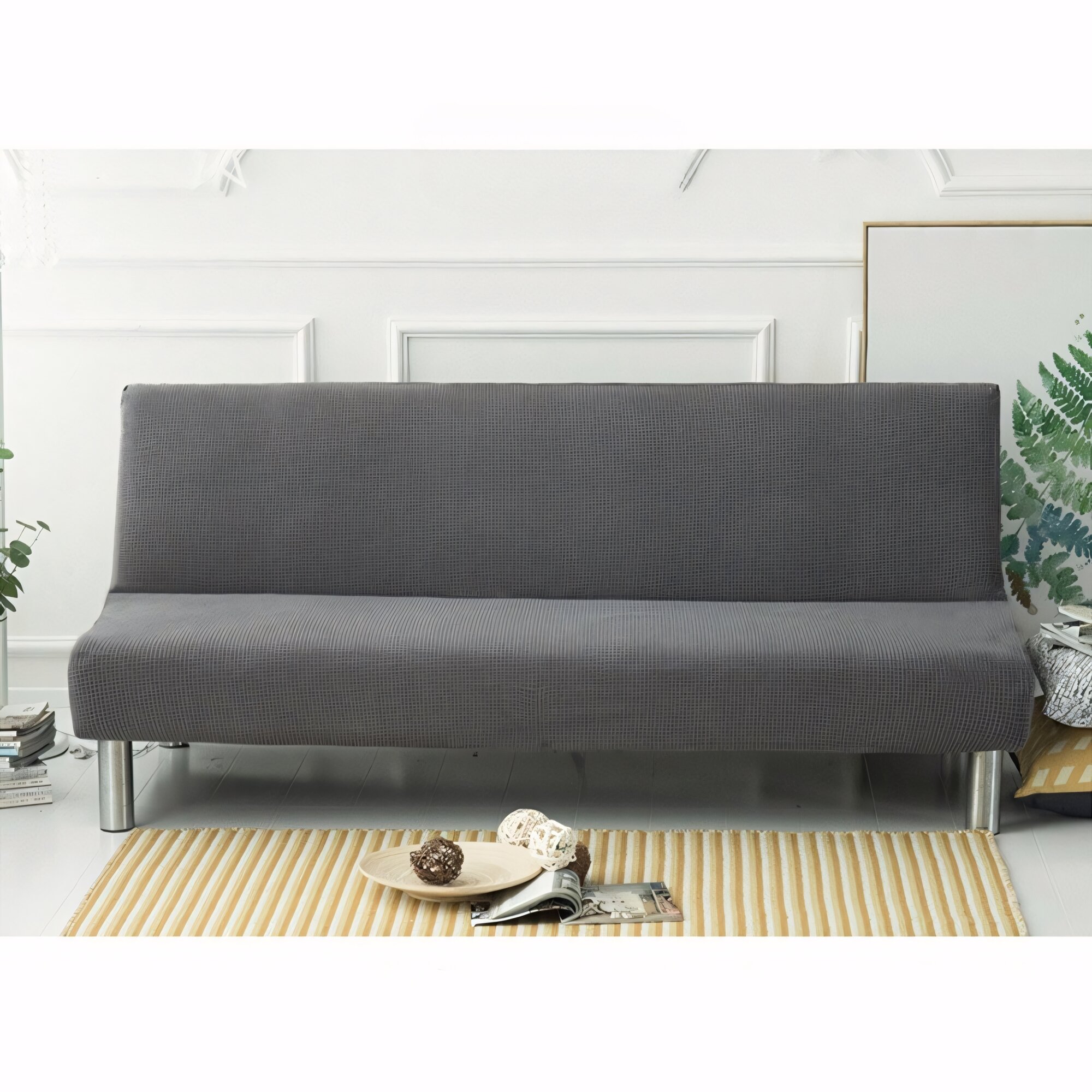 Чехол на прямой диван-кровать рельефный, серебристо-серый, размер 190-230 см