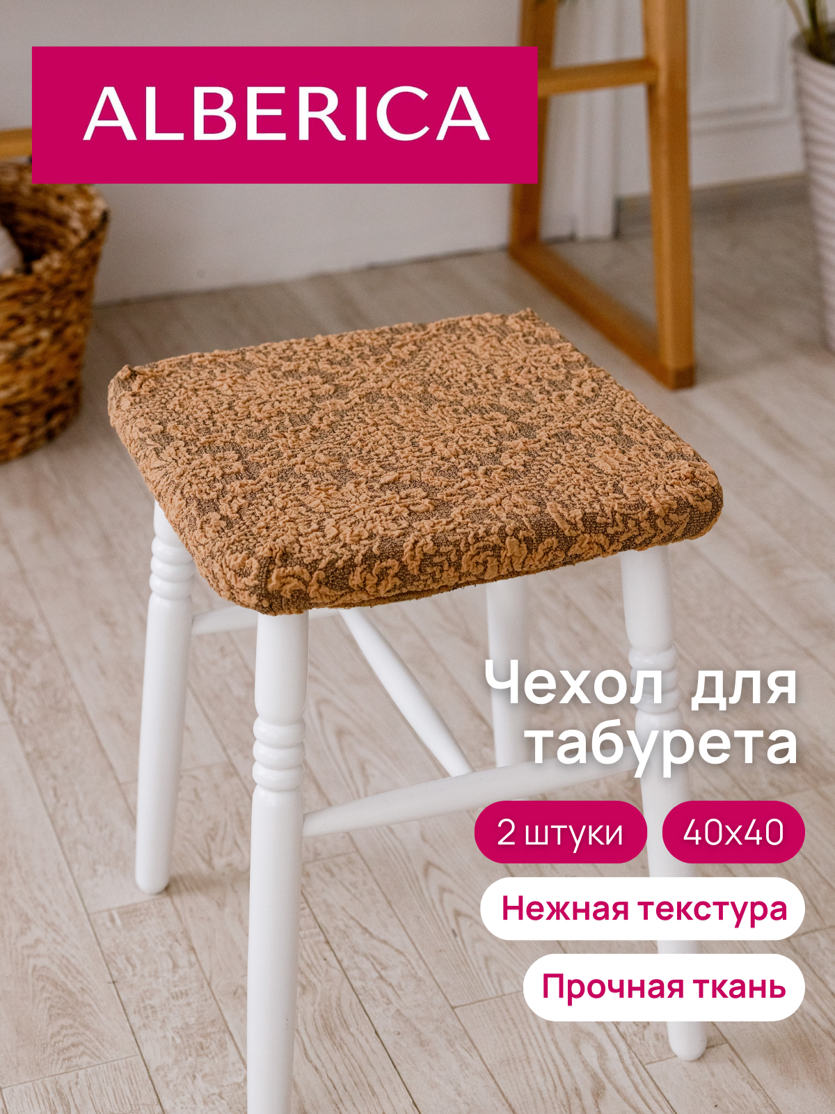 Чехол ALBERICA, 100 % полиэстер, для табурета, цвет капучино, 40x40 см