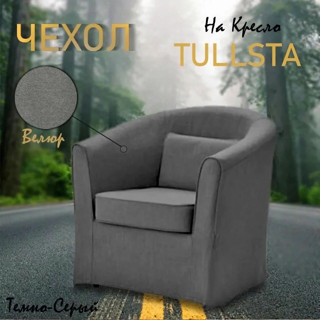 Чехол на кресло "Тульста" Цвет Тёмно-Серый Ткань Велюр "Антикоготь". интересное: