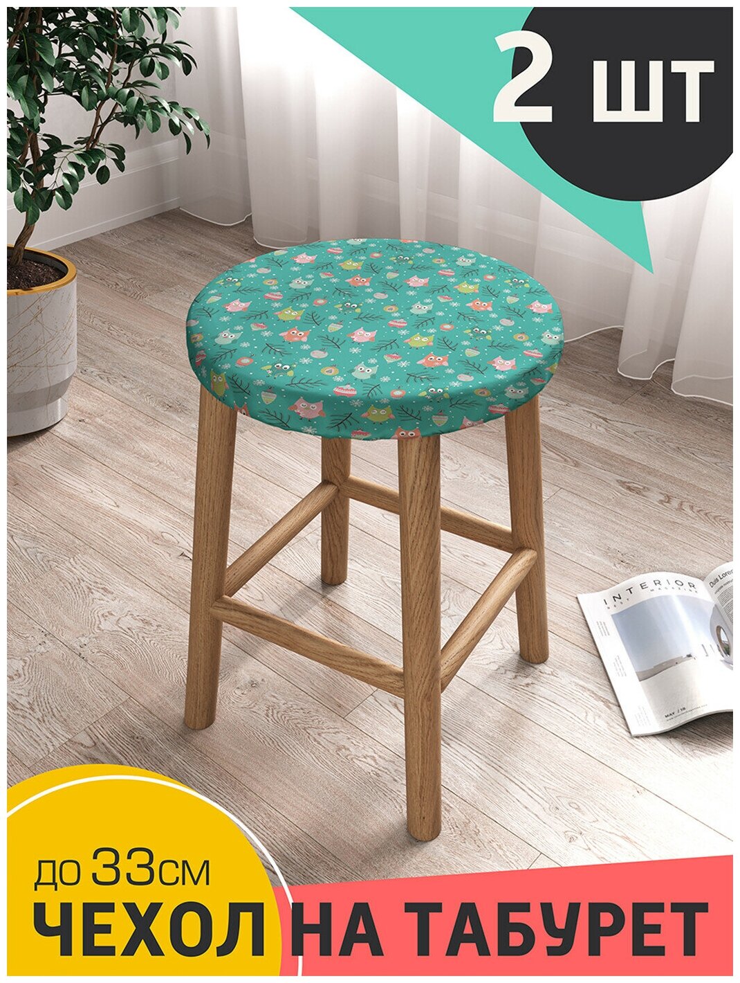 СохранитьЧехол на табурет круглый на резинке с рисунком JoyArty "Рождественские совы" 33 см интересное: