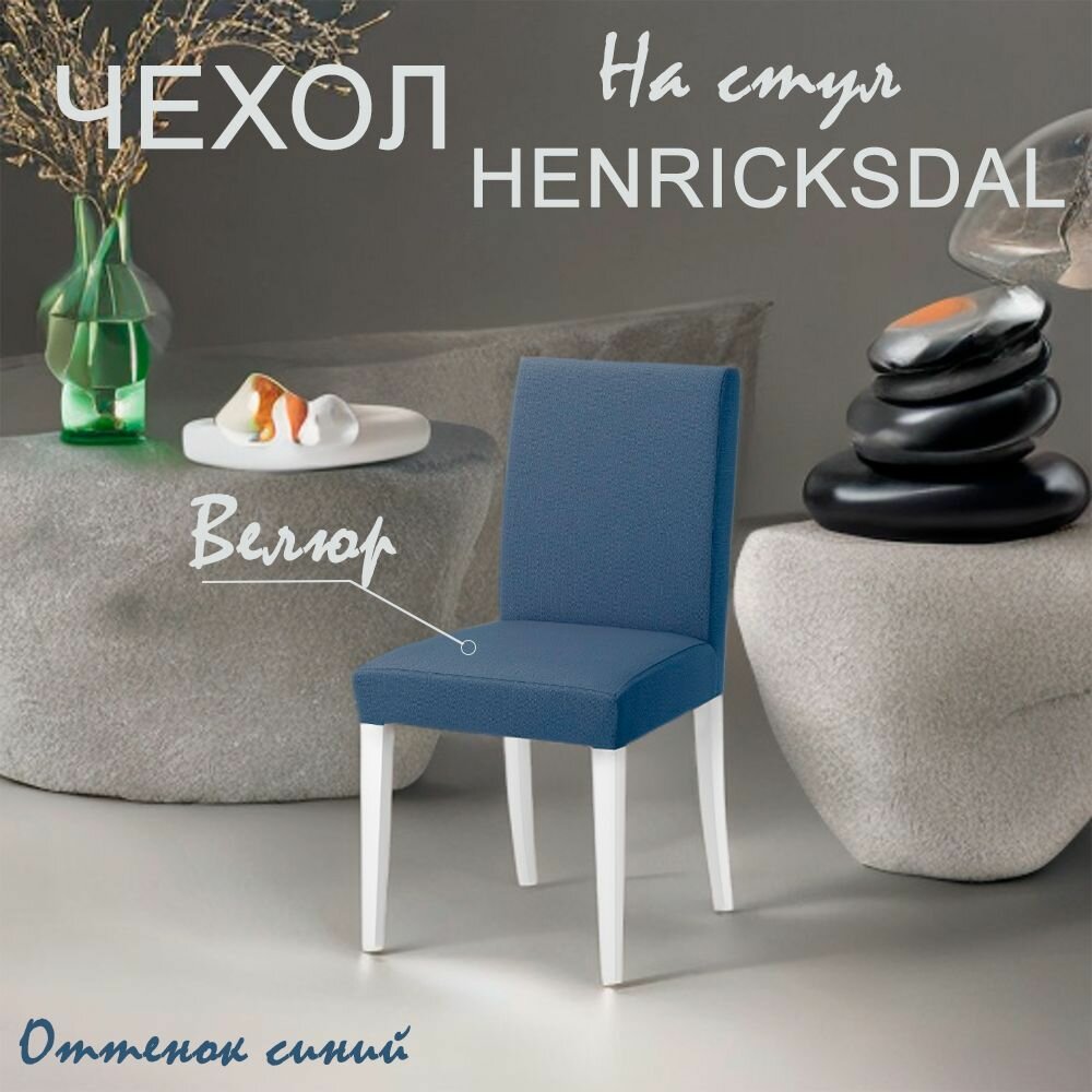 Чехол на стул "Хенриксдаль" синего цвета из ткани Велюр "Антикоготь" интересное: