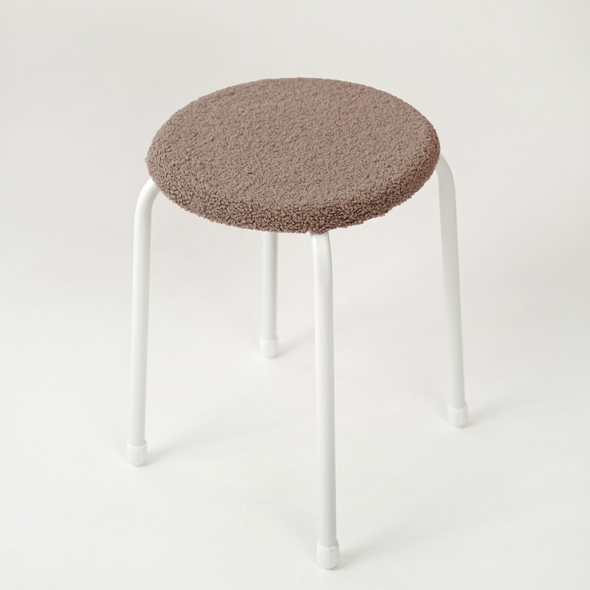 Чехол съёмный на Пуфик Круглый 39см, вельвет верх- бежево-серый, низ- белый (сливочный).
