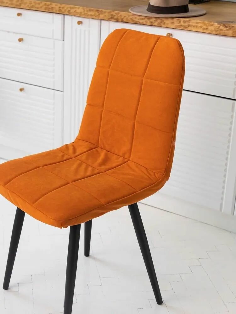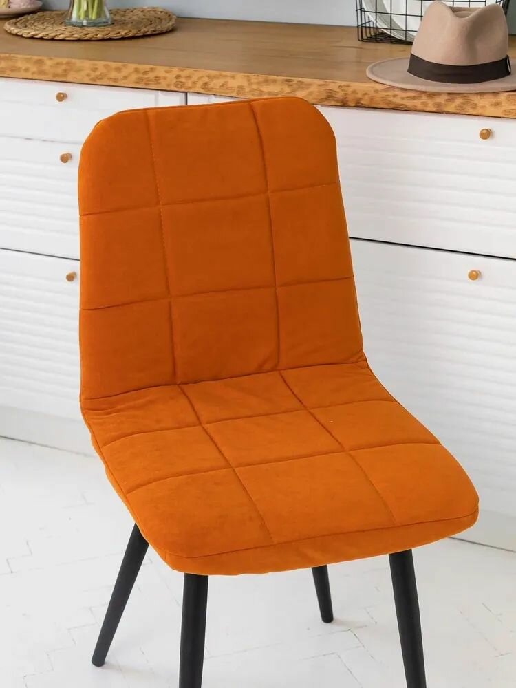 Купить Чехол на стулья Тедди Mилана из велюра, терракот оранжевый прострочка квадрат 2 шт