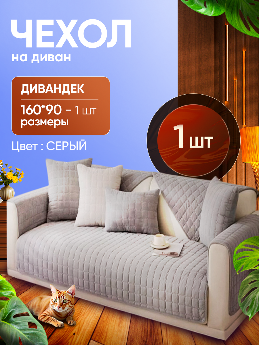 Чехол-накидка ANNA ANDREEVA, для дивана, для кресла,160x90 см, серый интересное: