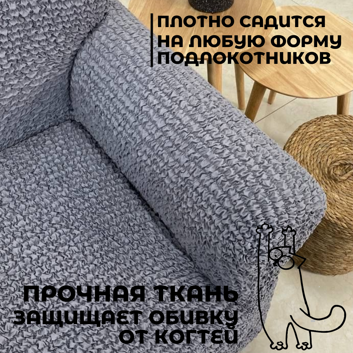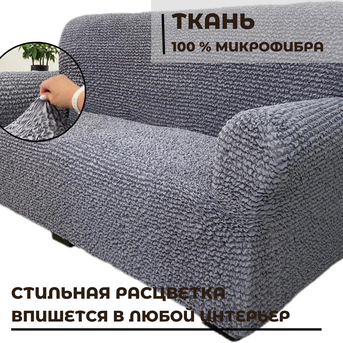 Еврочехол Дивантекс "Микрофибра", серый, на 3-местный диван, с подлокотниками на резинке, антивандальный. интересное: