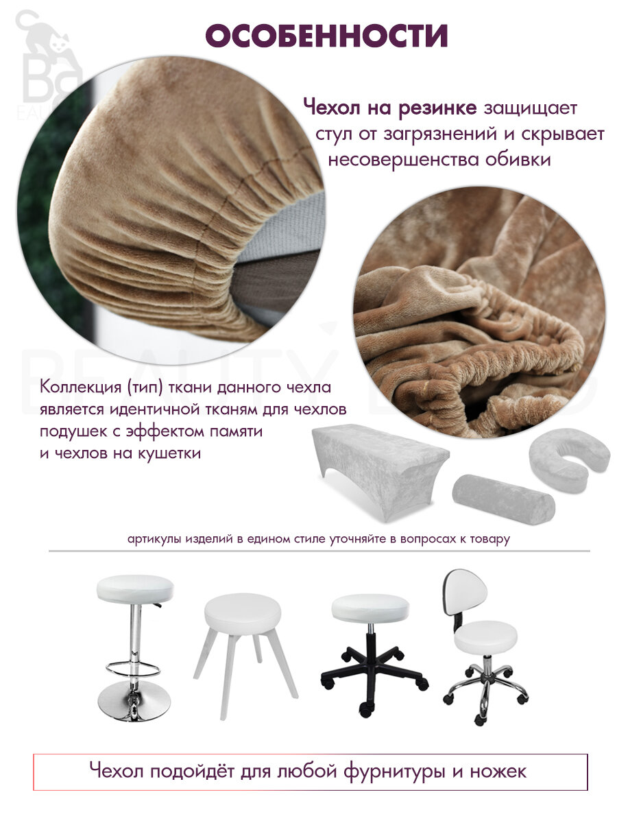Чехол на табуретку, чехол на сидушку или спинку защитный велюровый на резинке, молочный