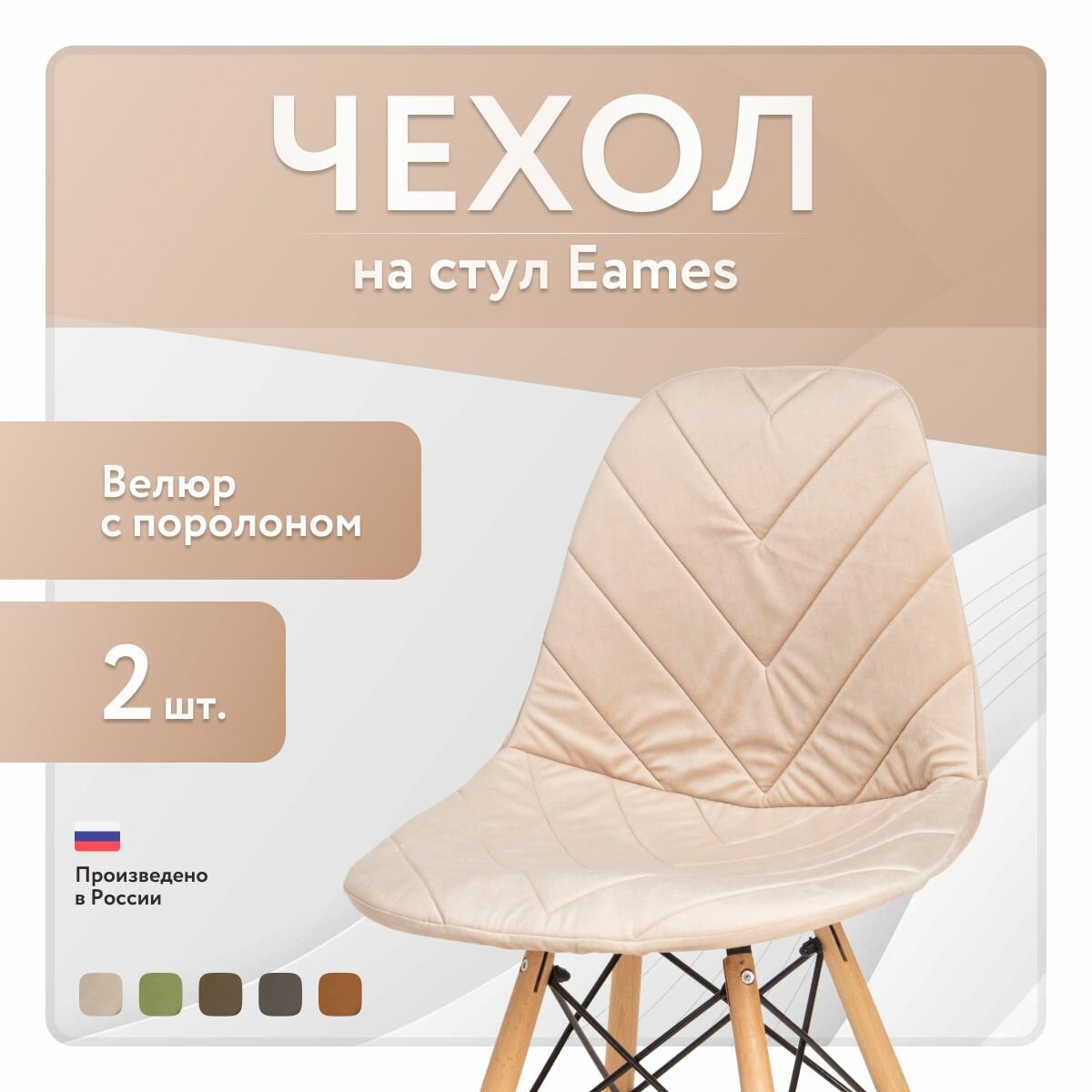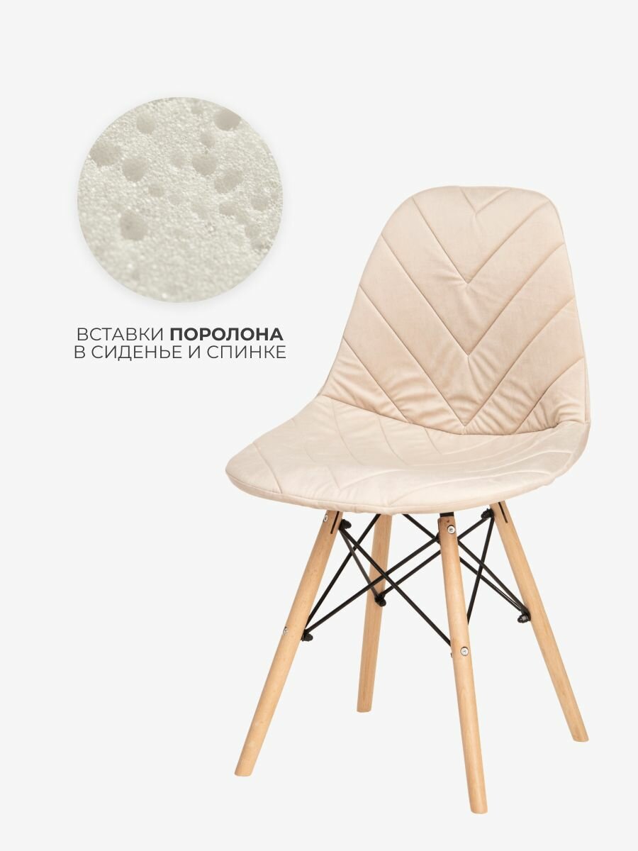 Чехол LuxAlto с поролоном на стул со спинкой Eames, 40x46 см, ткань Велюр, Светло-бежевый, 2 шт. интересное: