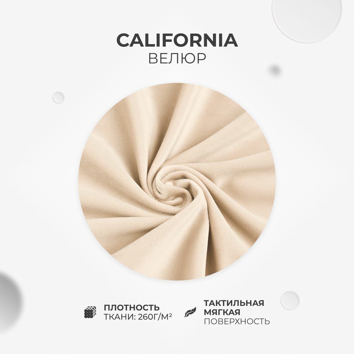 Чехол съёмный на Пуфик Круглый 39см, вельвет верх- бежево-серый, низ- белый (сливочный).