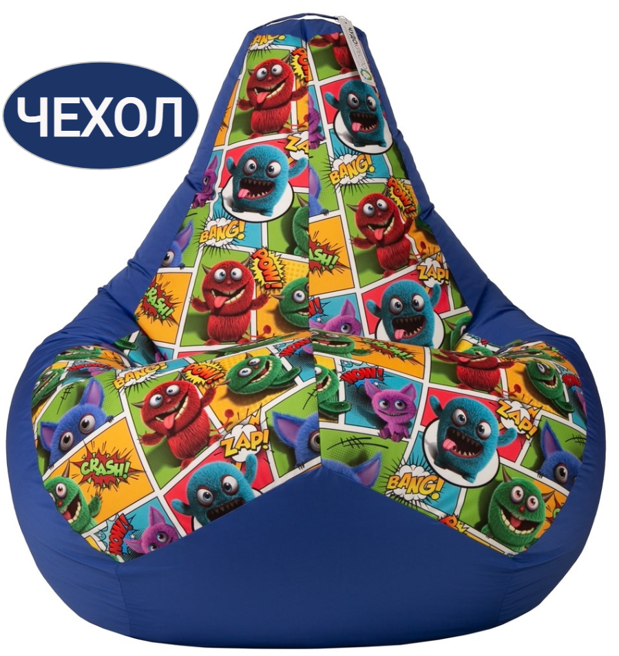 СохранитьВнешний чехол для кресла мешка груша Монстрики синий 120х80, XXL, Чудо Кресло, чехол для хранения игрушек интересное: