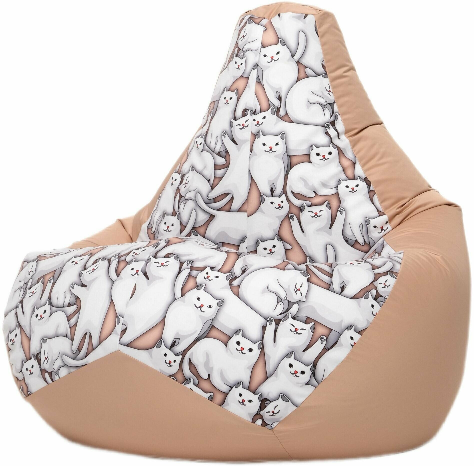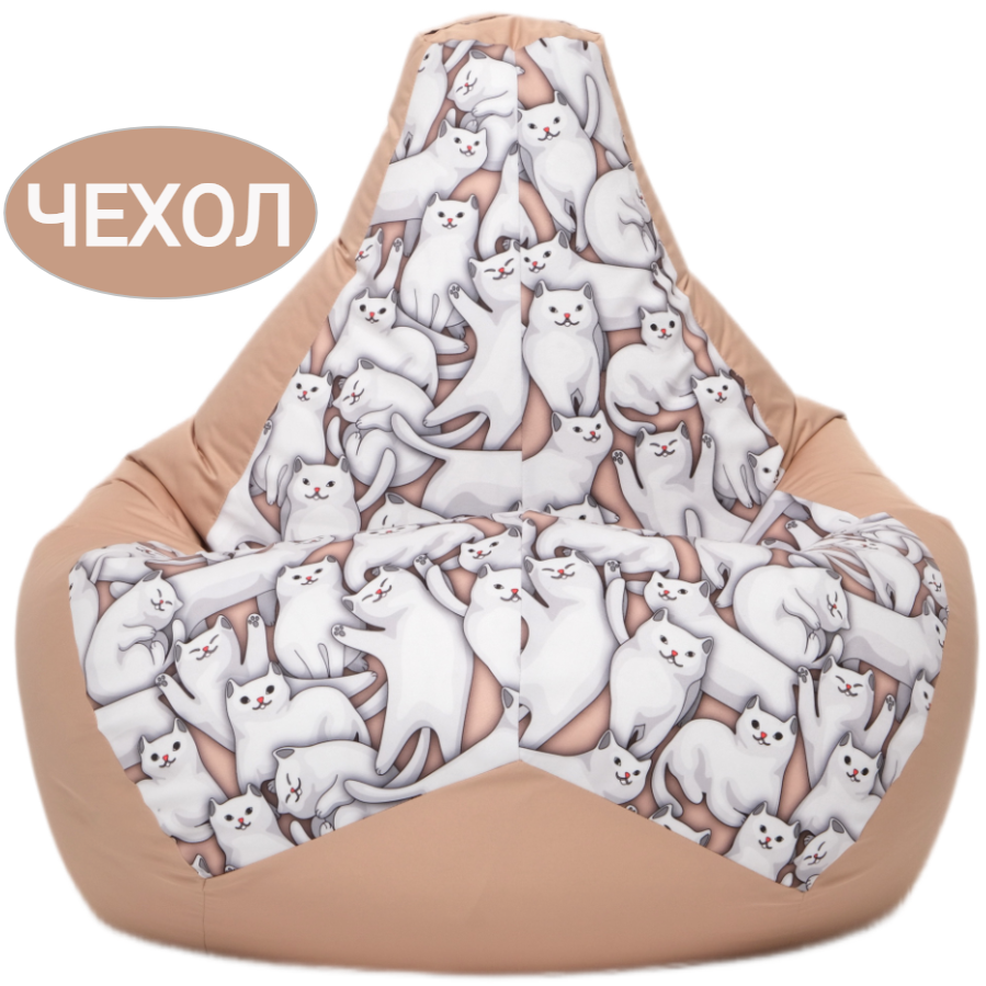 Купить Внешний чехол для кресла мешка груша Котики бежевый 120х80, размер XXL, Чудо Кресло, чехол для хранения игрушек