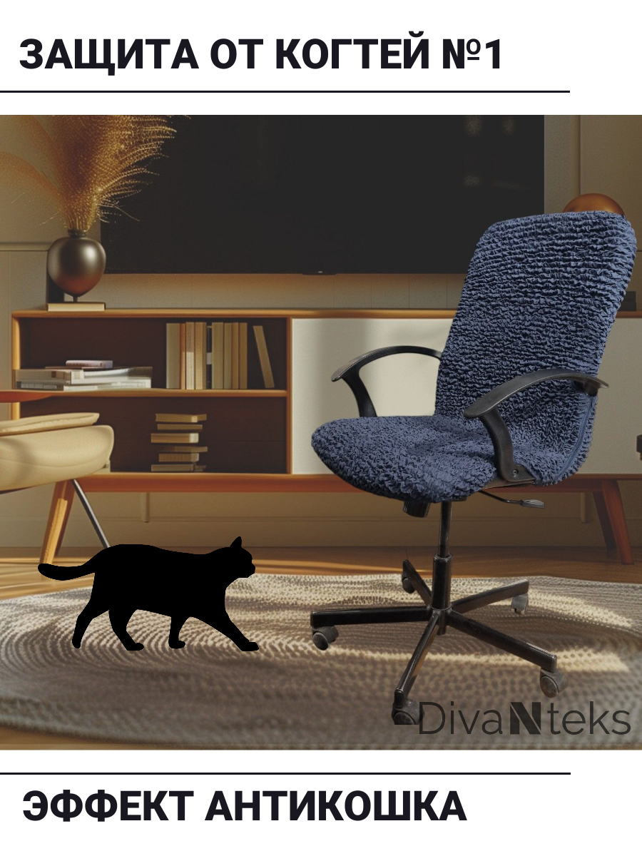 Чехол на компьютерное кресло "Графит". С эффектом "АнтиКошка"-защита от когтей. Антивандальный.