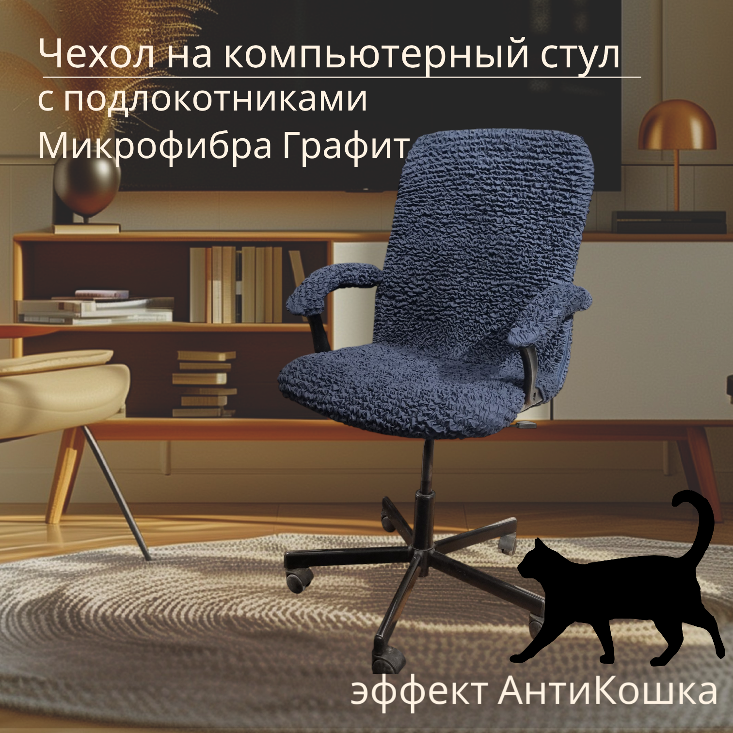 Чехол на компьютерное кресло темно-серый Графит +Подлокотники 2 шт. Микрофибра. Защита от когтей. Антивандальный. интересное: