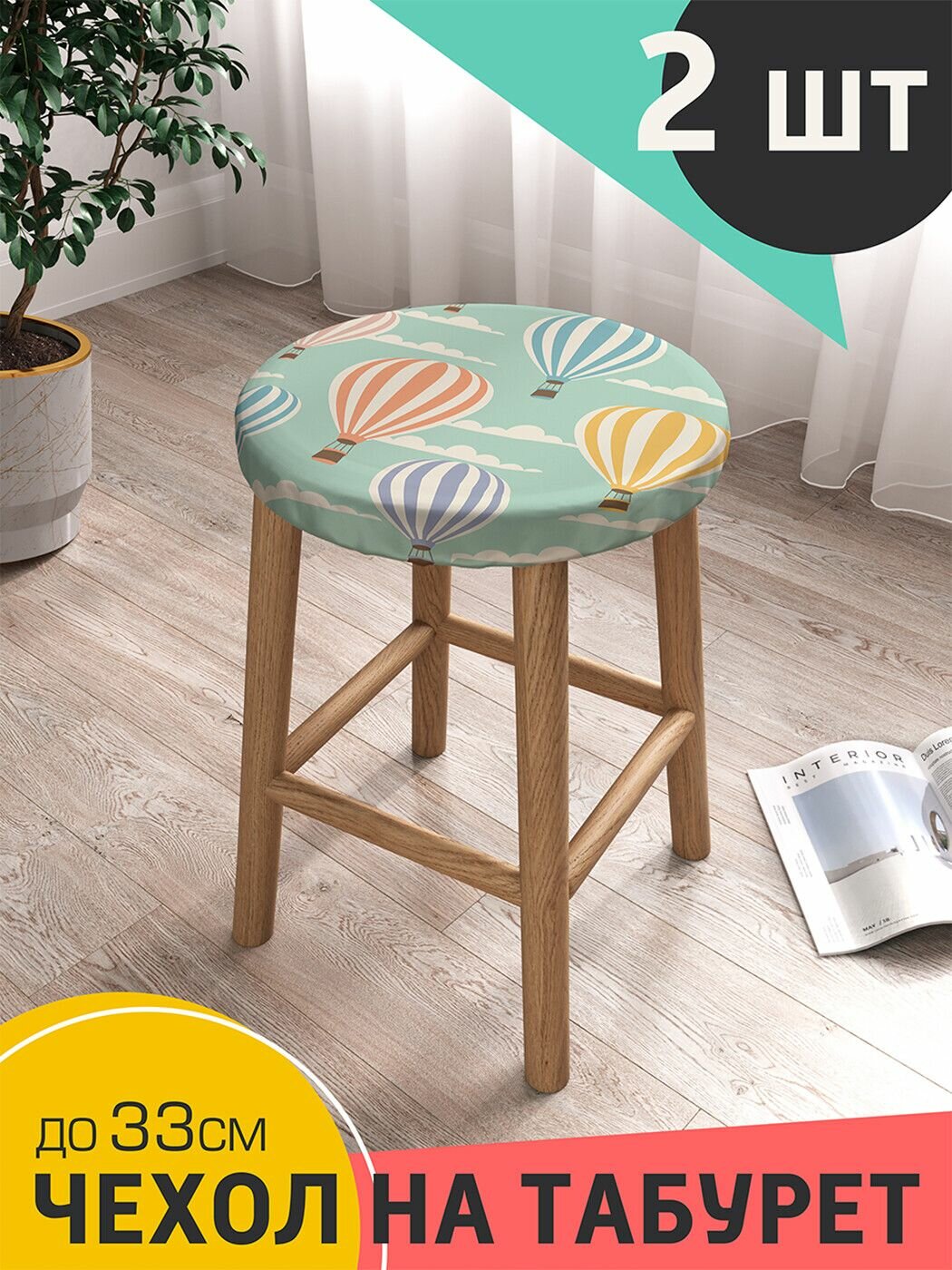 Чехол на табурет круглый на резинке с рисунком "Воздушные шары" 33 см, JoyArty