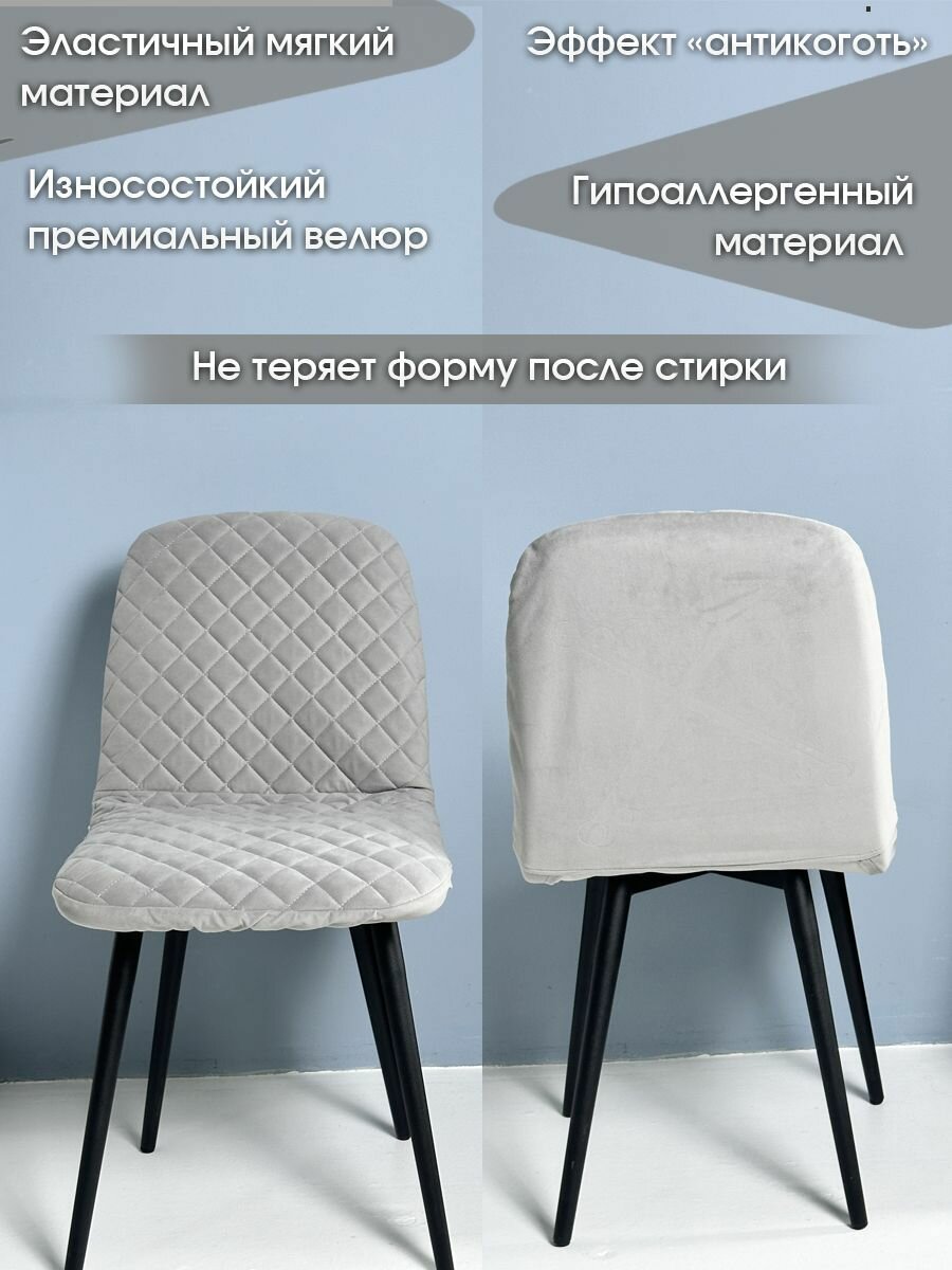 Чехол на стул со спинкой Betta из велюра 2 шт, 41х46 см, серый интересное:
