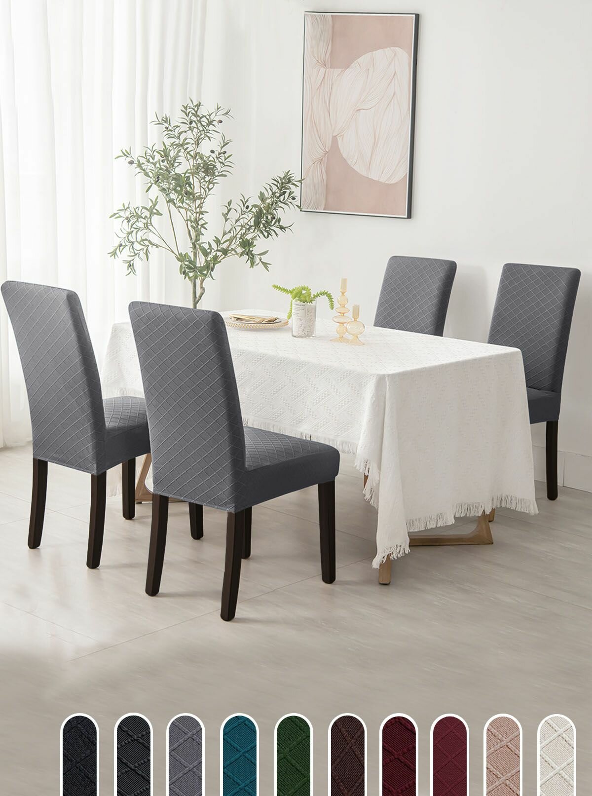 Чехол LuxAlto на стул со спинкой, для мебели, Коллекция "Fukra rhombus", Темно-серый, Комплект 4 шт.