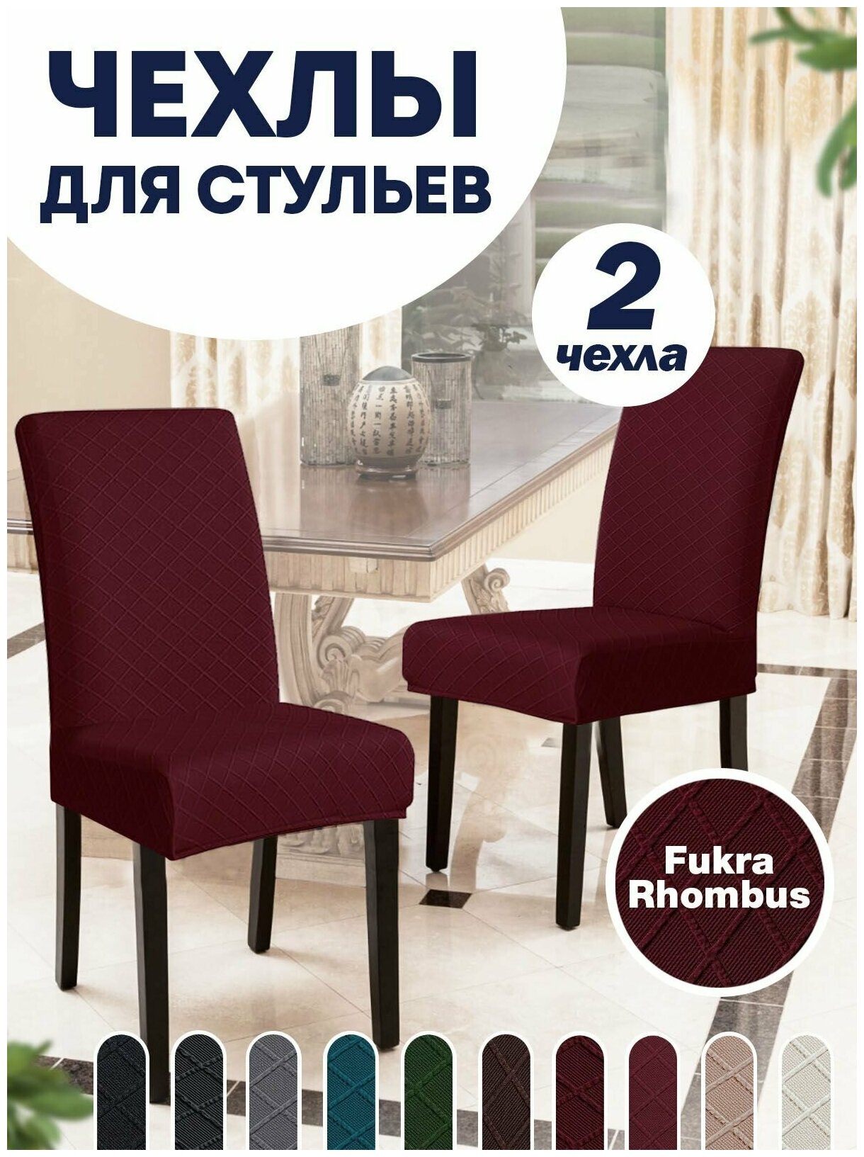 Купить Чехол LuxAlto на стул со спинкой, для мебели, Коллекция "Fukra rhombus", Бордовый, Комплект 2 шт.