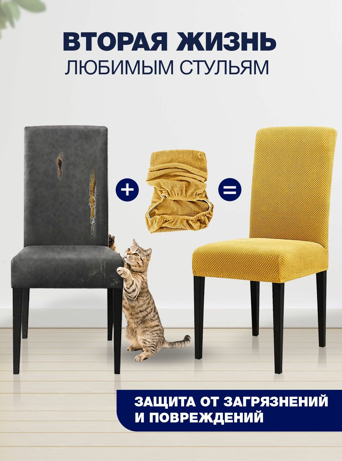 СохранитьЧехол LuxAlto на стул со спинкой, для мебели, Коллекция "Fukra oval", Темно-синий, Комплект 4 шт. интересное: