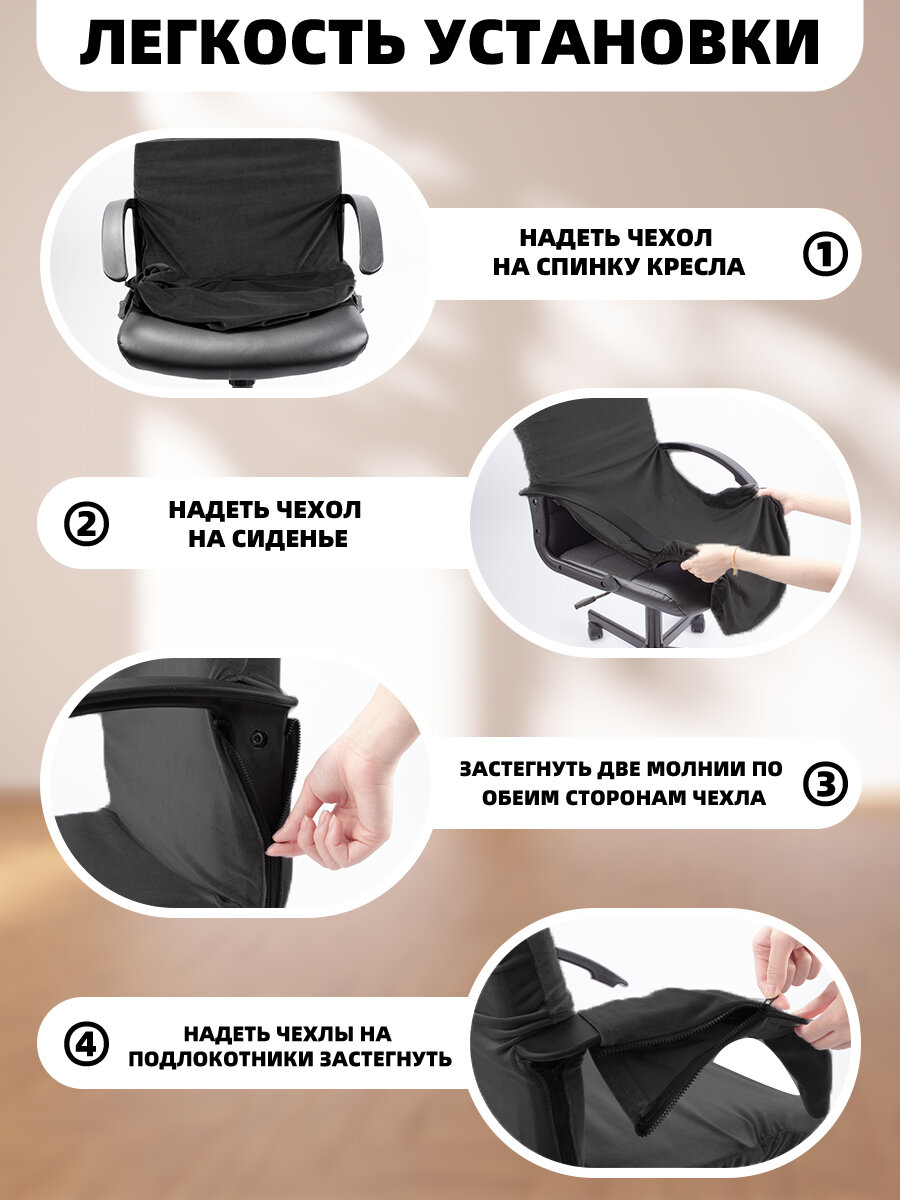 Чехол на стул компьютерный, велюр универсальная с высотой спинки 65-80 см интересное: