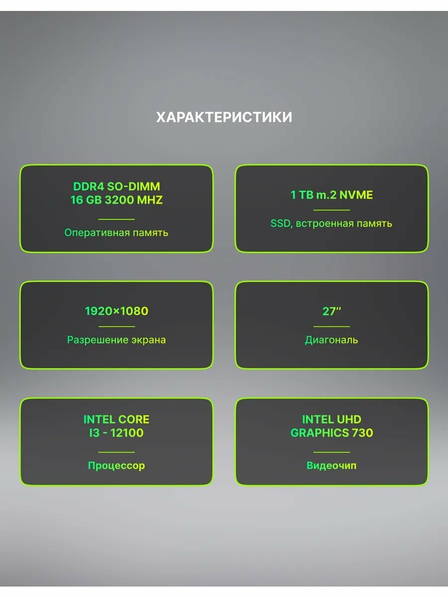 Моноблок компьютер 27" Intel Core i3-12100 интересное:
