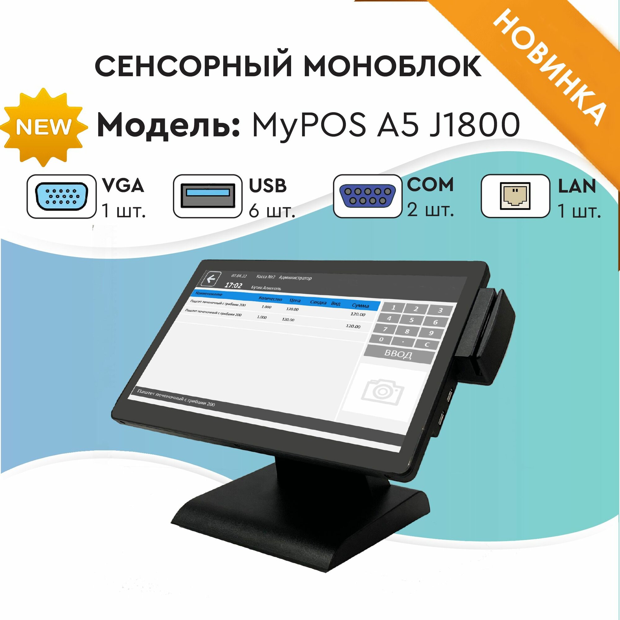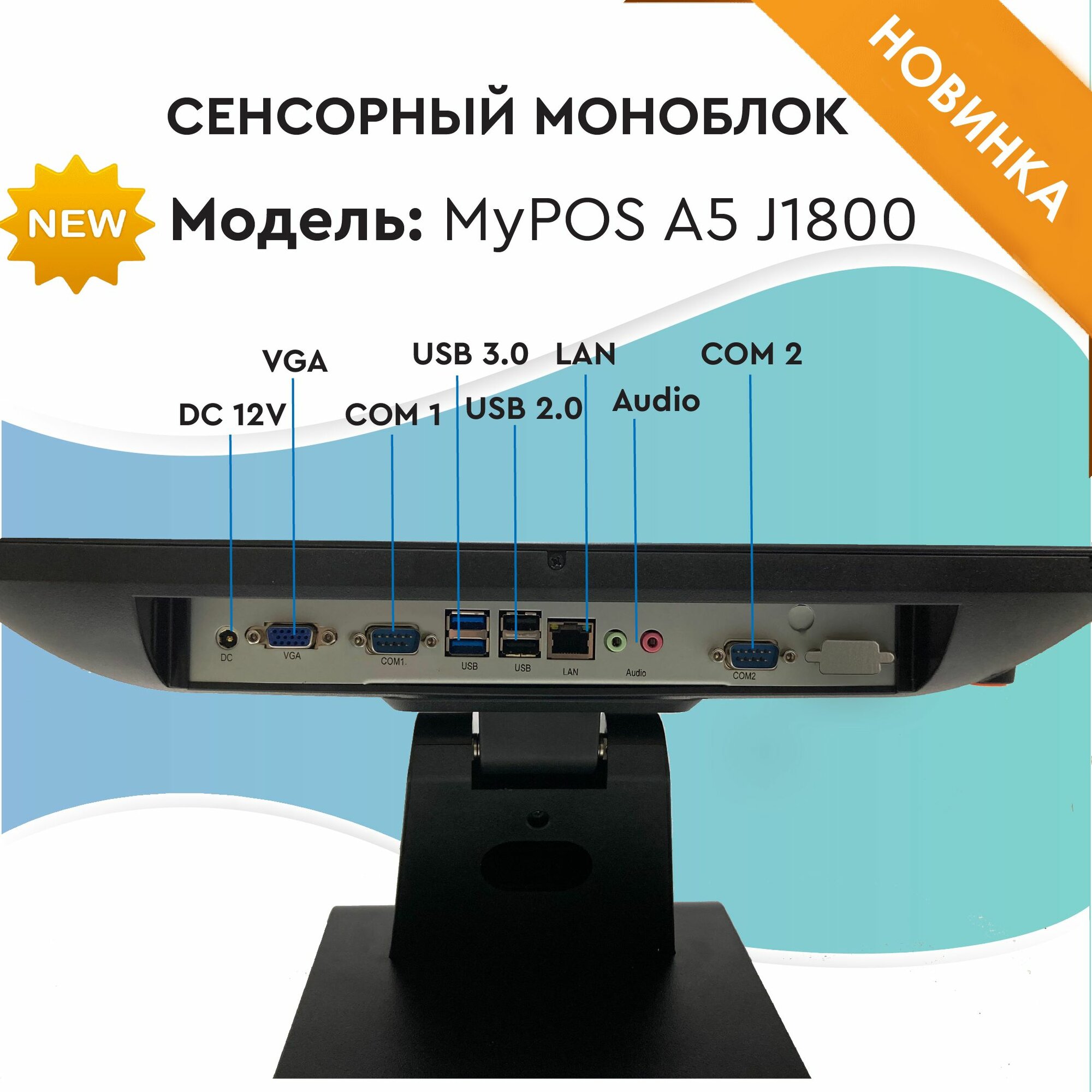 Сенсорный моноблок MyPOS А5 15,6" LCD, J1800, RAM 8Gb, SSD 128Gb, 2 RS232, 6 USB, MSR, черный интересное: