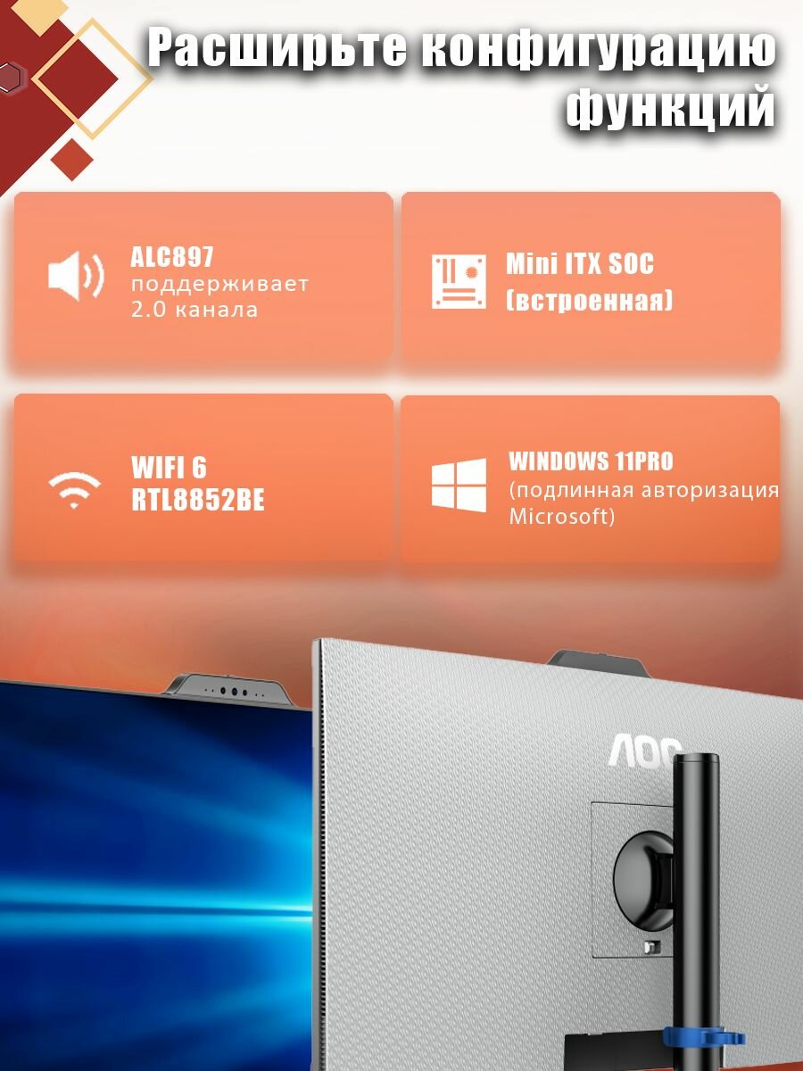 AOC 23.8" Моноблок (Intel Core i3-13100E, RAM 16 ГБ, SSD 512 ГБ, Intel UHD Graphics 730, Windows 11 Pro), черный интересное: