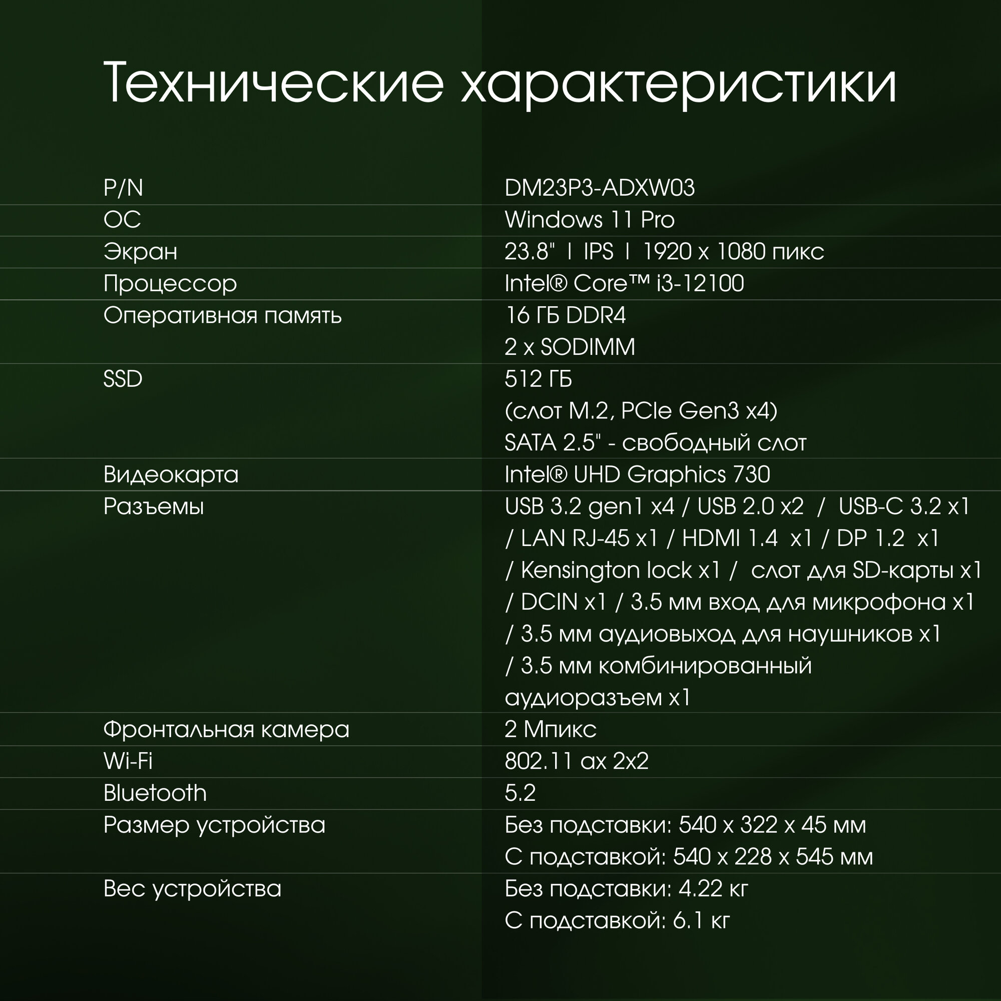 Моноблок Digma Pro Unity 23.8" Core i3 12100 16/512Гб UHD Graphics 730 Windows 11 Pro интересное:
