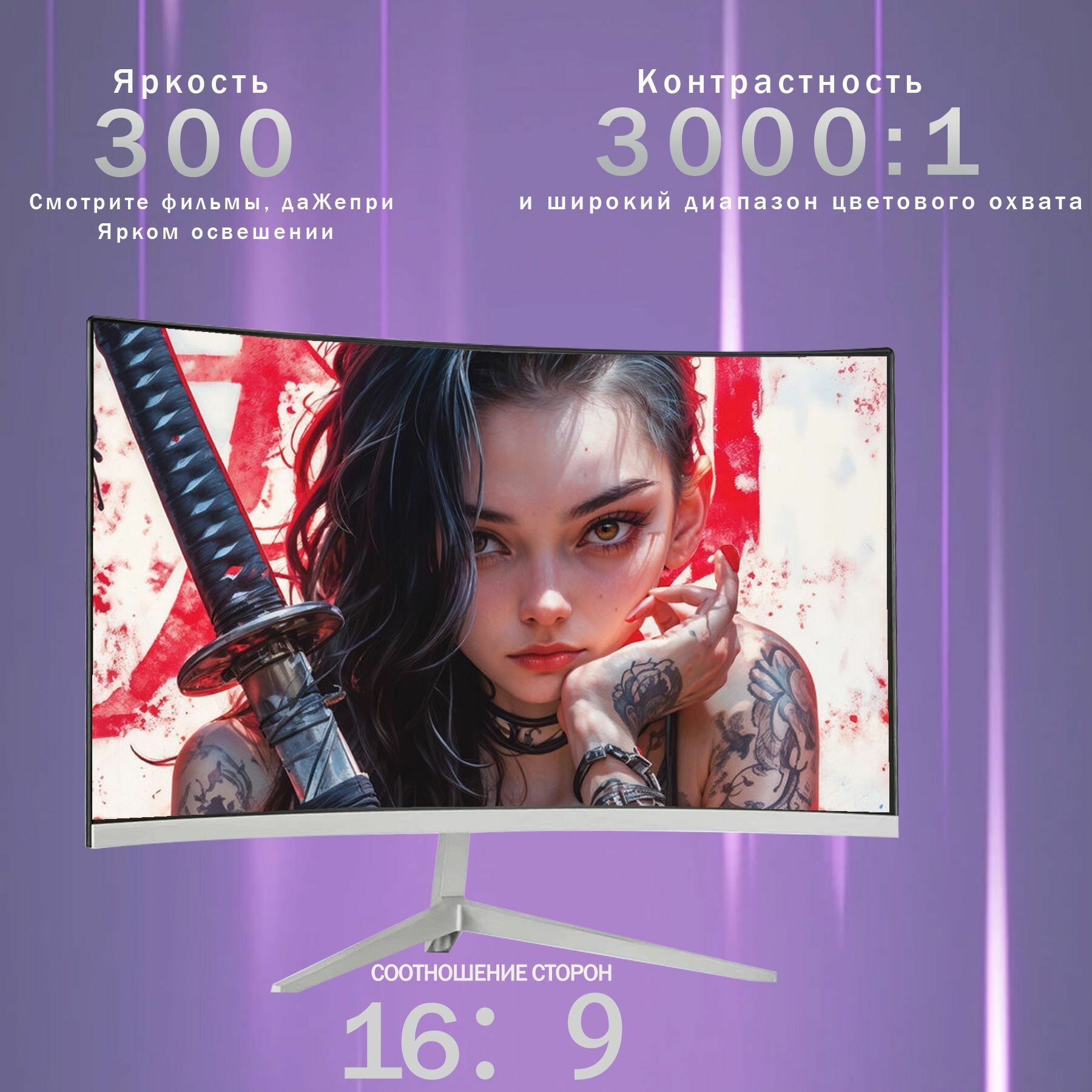 27" Монитор, разрешение 2560*1440, частота обновления 165Гц, изогнутые экраны, Монитор с защитой для глаз, Белый интересное: