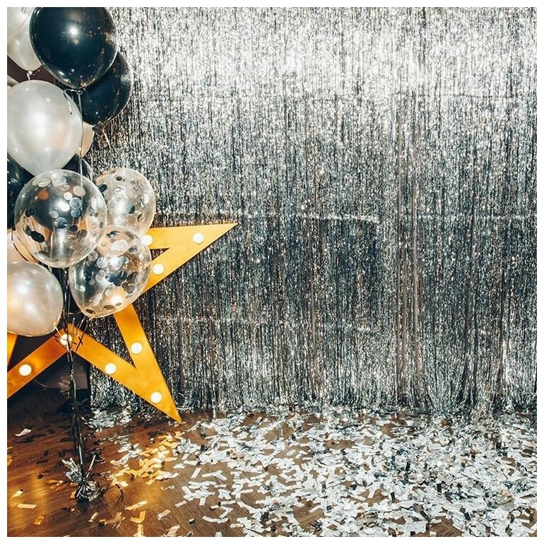 Занавес Дождик Серебро, Металлик, для фотозоны 100*200 см, 1 шт.