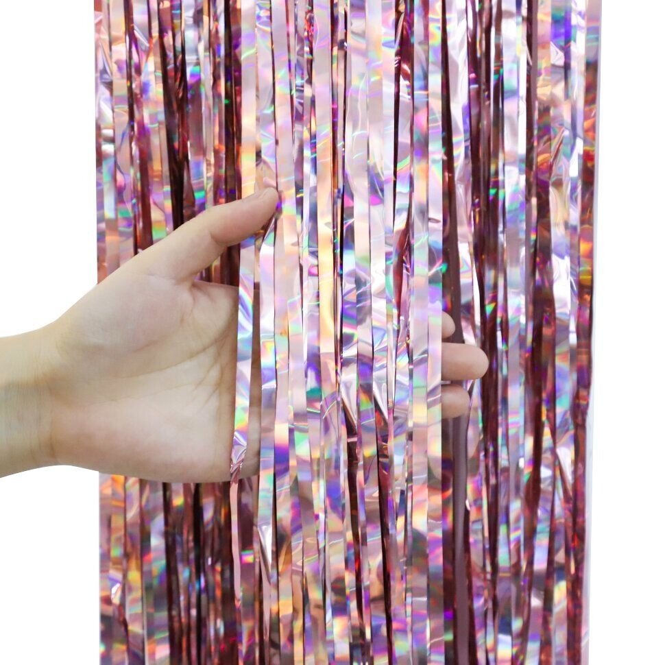 Купить Занавес Дождик Электрик, Розовое Золото, Голография, 100*200 см, 1 шт.