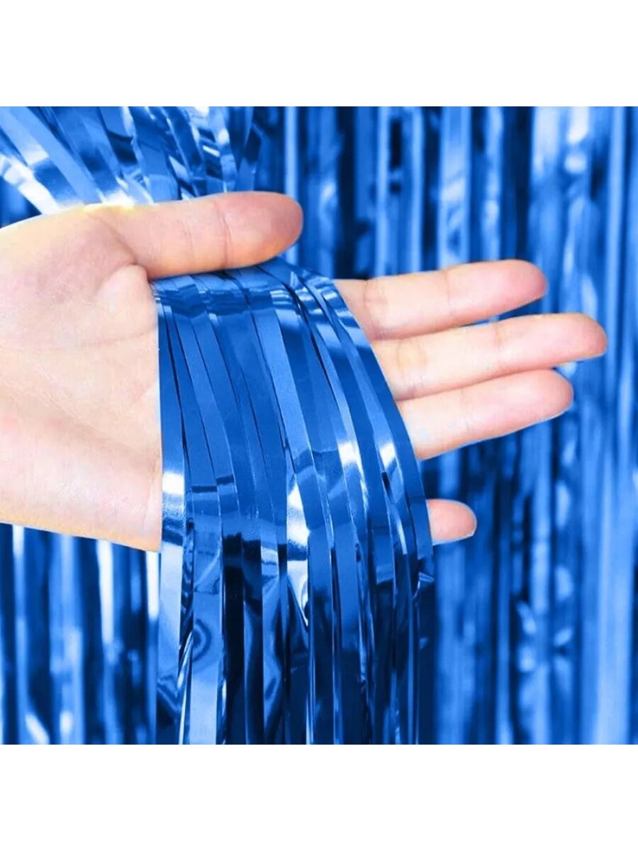 Занавес Дождик Звезды, Синий, Металлик, для фотозоны, 100*200 см, 1 шт.