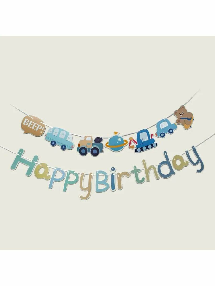Купить Гирлянда бумажная растяжка День Рождения с машинками, 210 см, МосШар