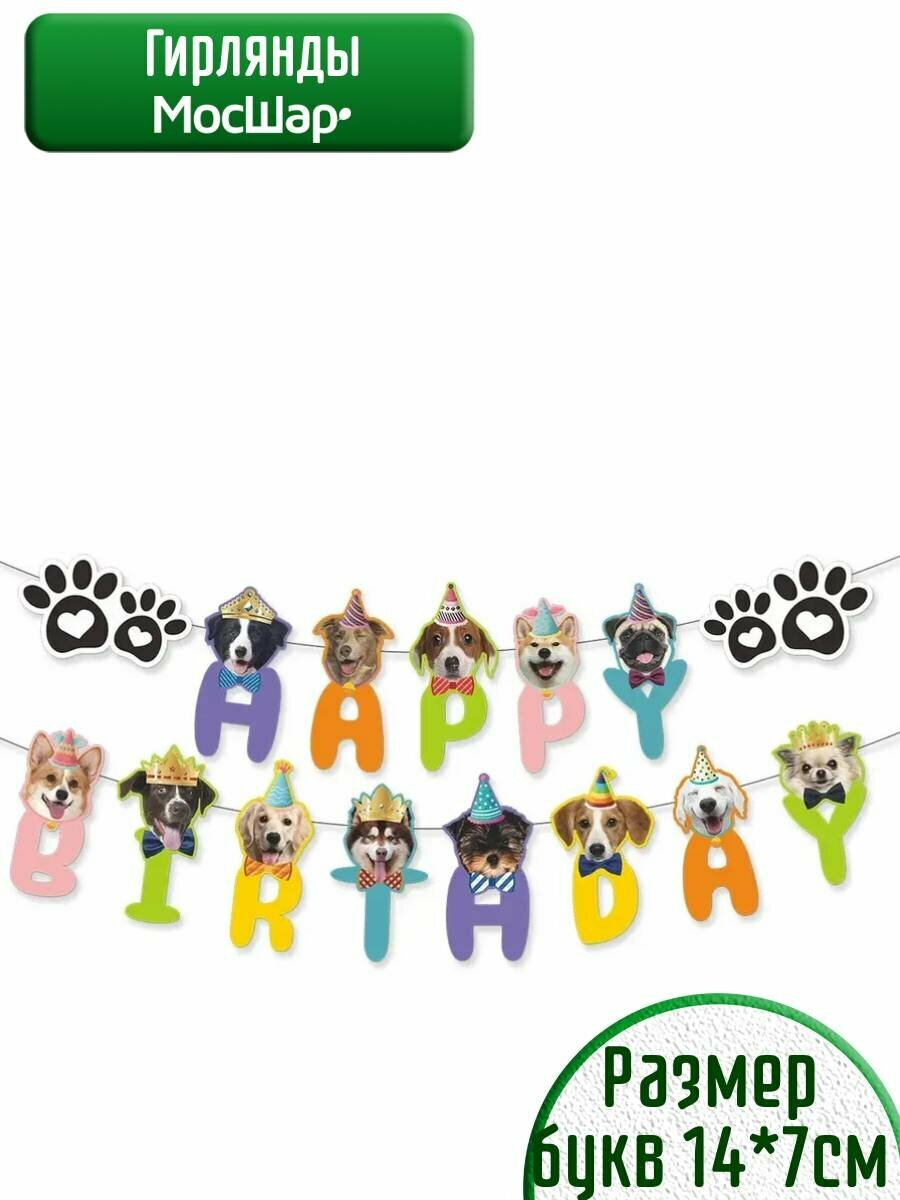 Купить Гирлянда бумажная МосШар "День Рождения", с собачками, 150 см x 4 см x 17 см